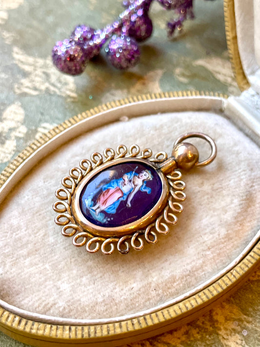Pendente in ametista con amorino dipinto, epoca vittoriana