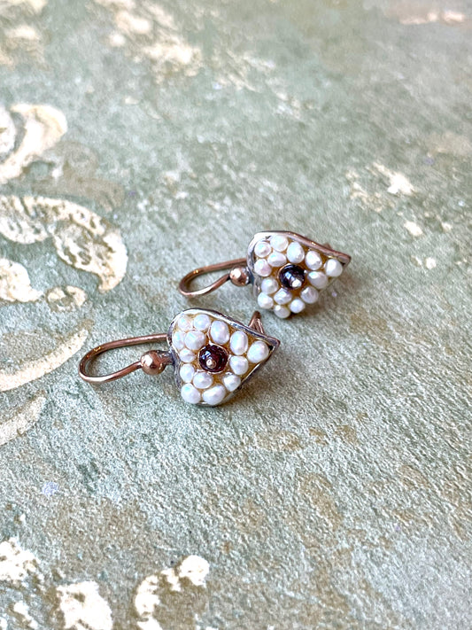 Romantici orecchini in argento rosa e perle, anni ‘80