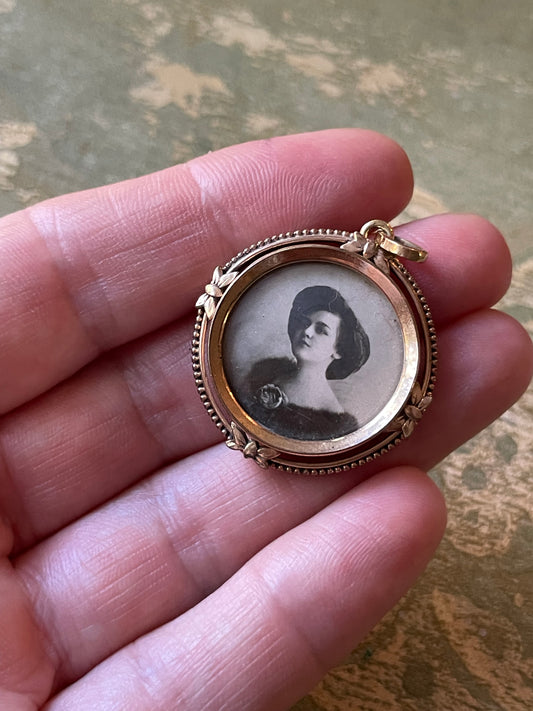 Delizioso pendente porta ritratto laminato in oro giallo, 1910/20