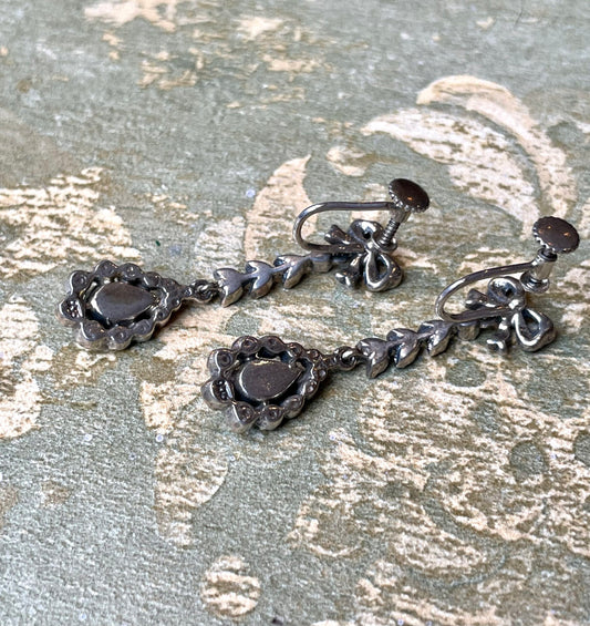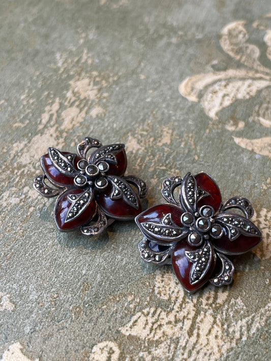 Orecchini in argento, smalto e marcassite, anni ‘40/50