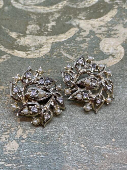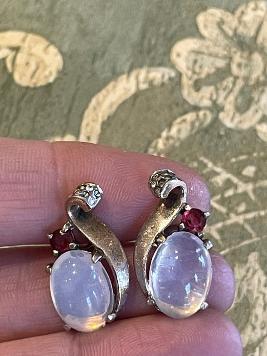Orecchini in argento e claire de lune, Trifari, anni ‘40/50