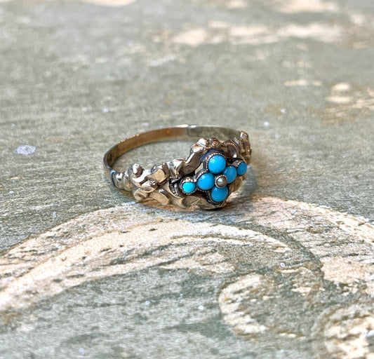 Romantico anello sentimentale vittoriano con Non ti scordar di me in turchesi