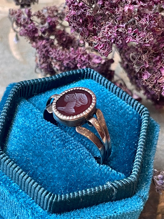 Squisito anello con cammeo neoclassico in agata bianca, epoca vittoriana