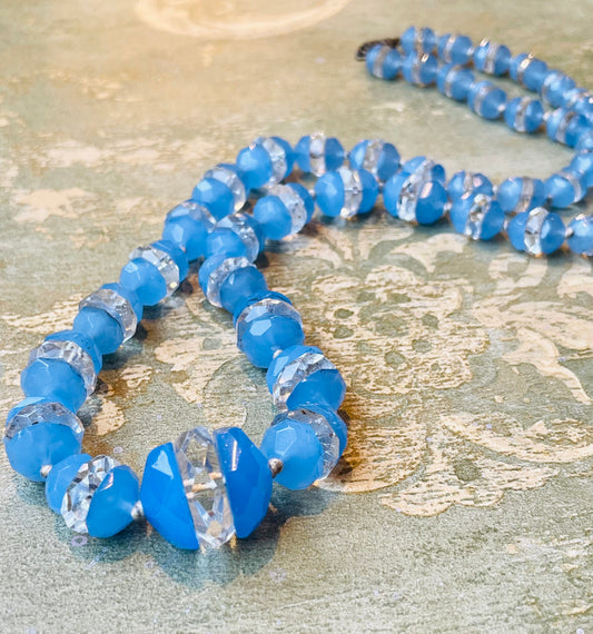 Collana Lavalier con cristalli e pasta di vetro turchese, De Wan, anni ‘50