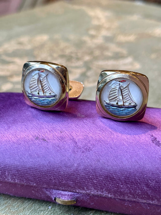Gemelli con veliero fixe’ sur verre, anni ‘40/50