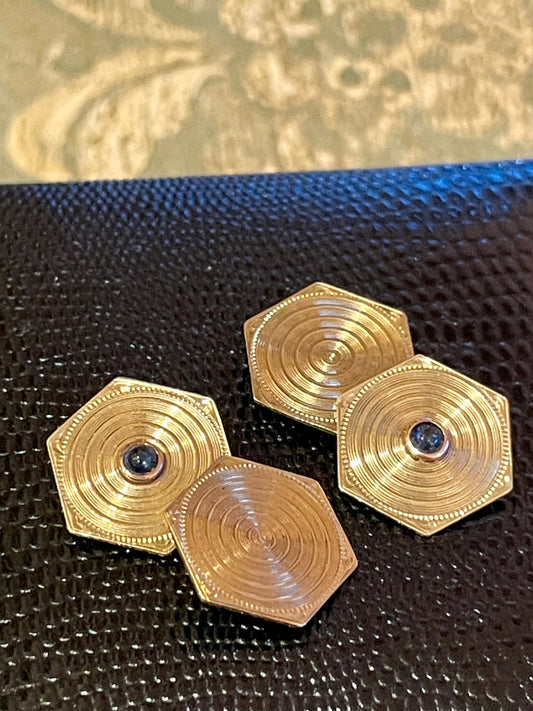 Gemelli doppi ottagonali, con zaffiri, anni ‘30/40