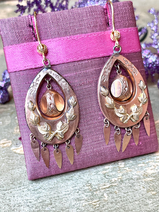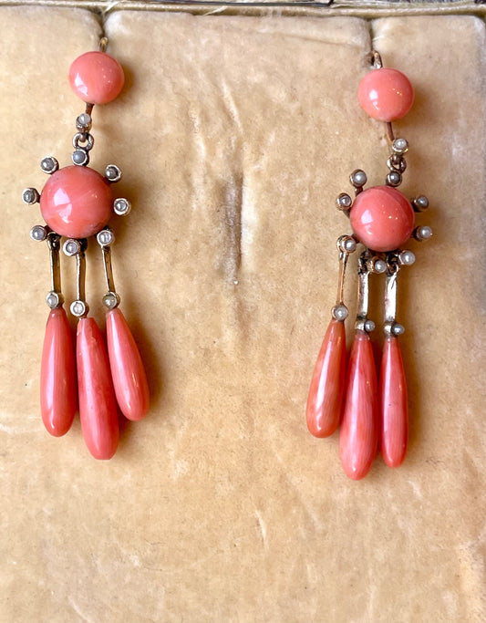 Incantevoli orecchini vittoriani con gocce di corallo naturale