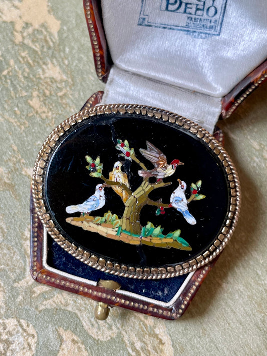 Raffinata spilla in micromosaico con uccellini, Roma, prima metà dell’OttocentoPrezzo di listino €980,00 EURPrezzo di listinoPrezzo unitario / per-