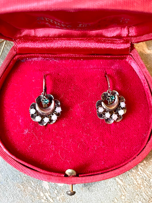 Romantici orecchini dormeuse in oro rosa e perle, Italia del sud, epoca borbonica