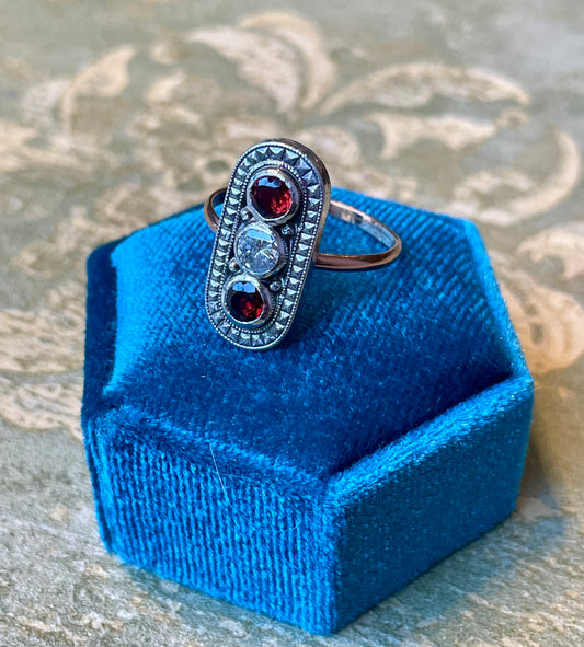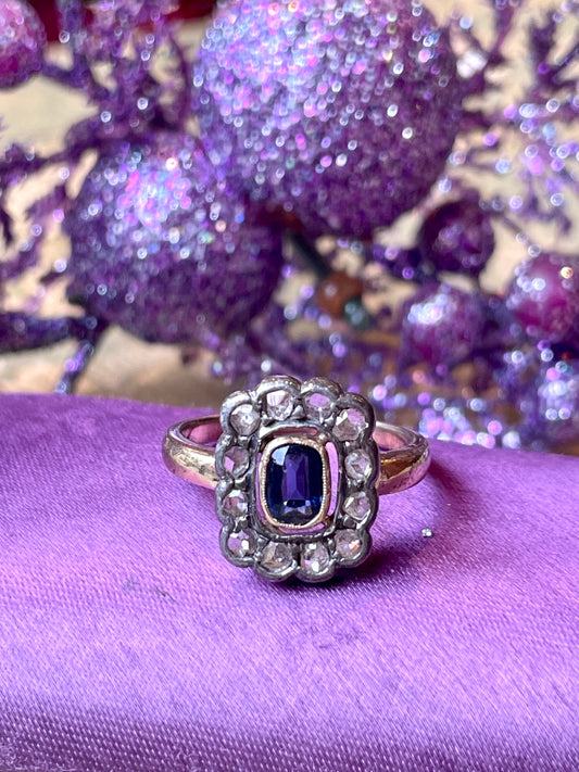 Romantico anello vittoriano con zaffiro e rosette di diamantiRegular price €0,00 EURRegular priceUnit price / per-
