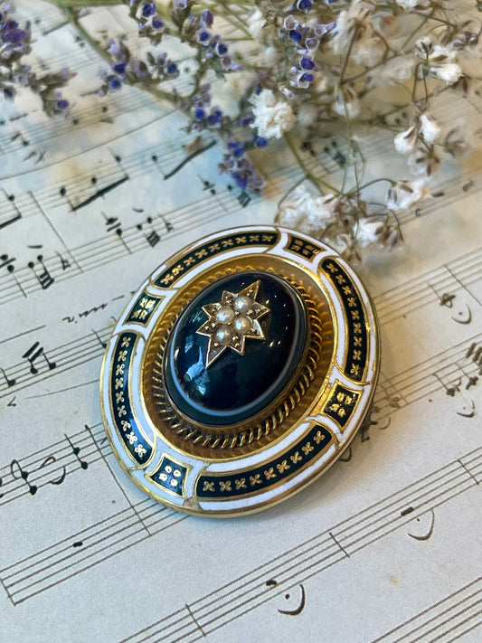 Incantevole spilla e pendente vittoriano in oro, smalto e agataRegular price €720,00 EURRegular priceUnit price / per-