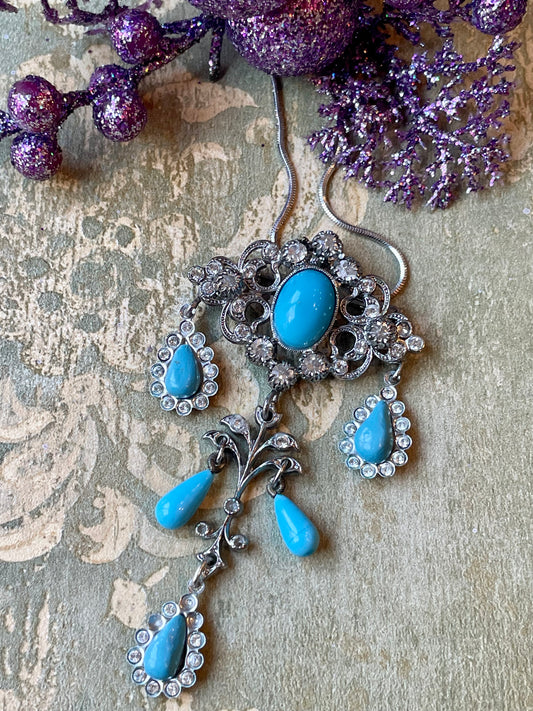 Collana Lavalier con cristalli e pasta di vetro turchese, De Wan, anni ‘50Regular price €165,00 EURRegular priceUnit price / per-