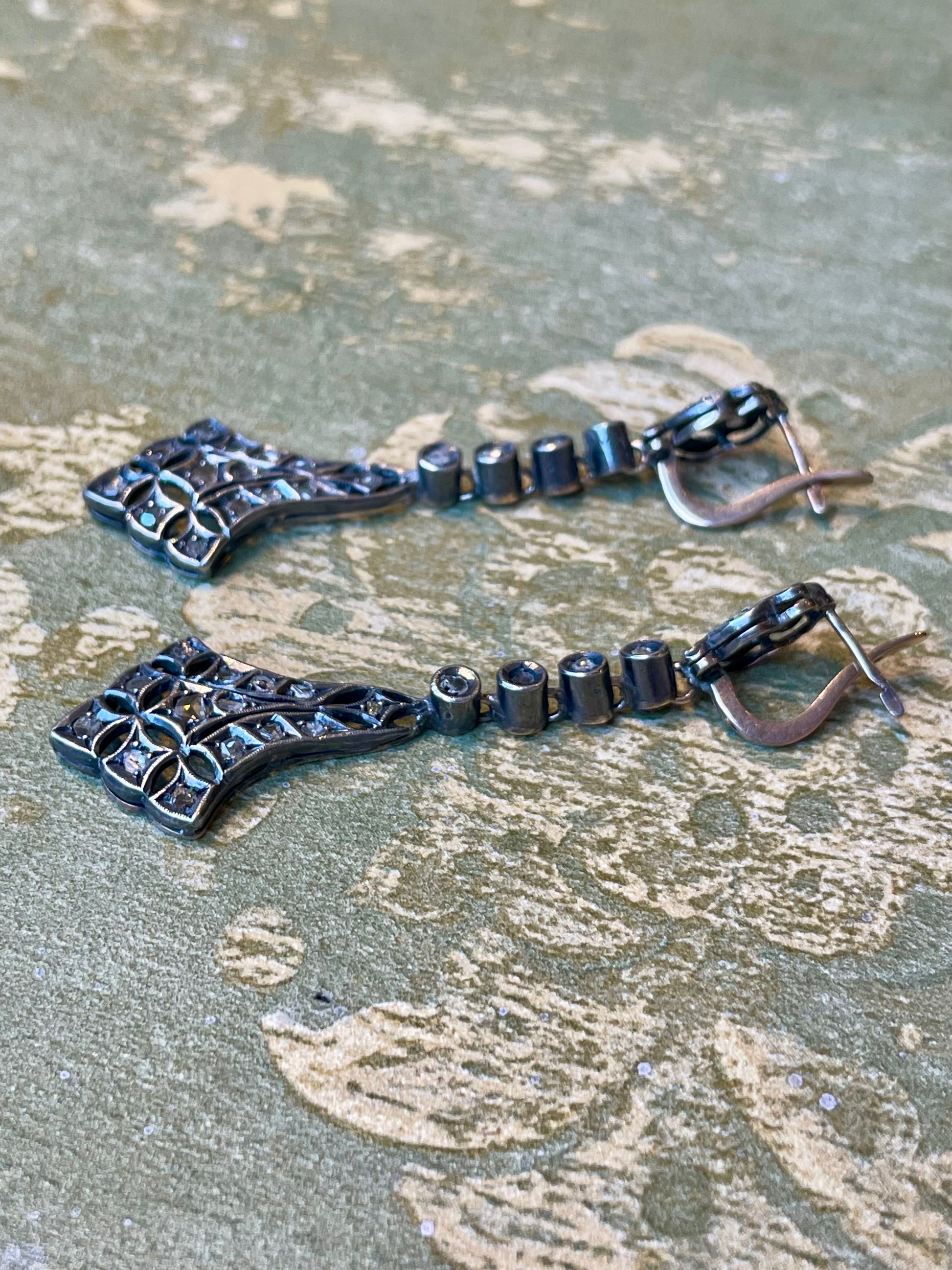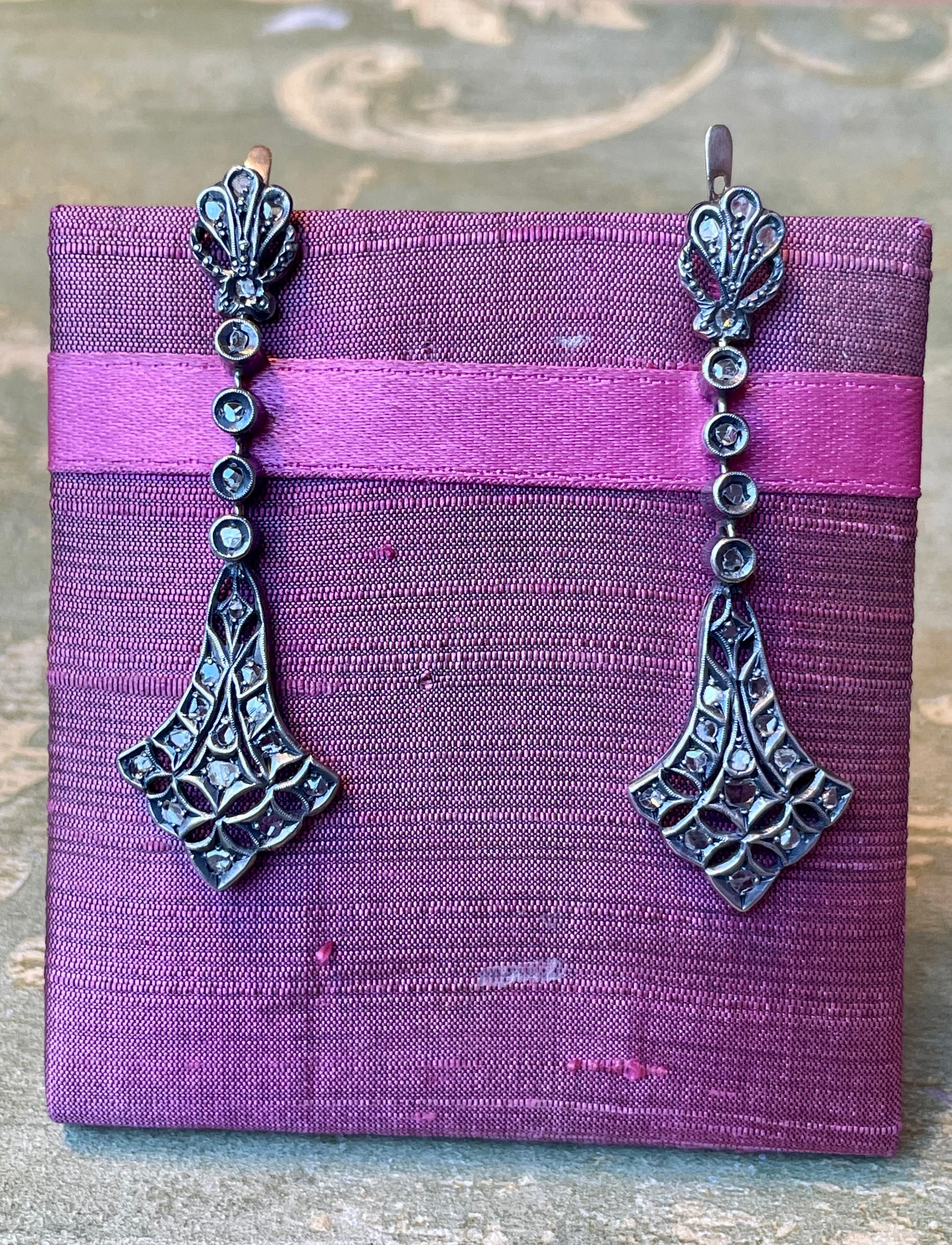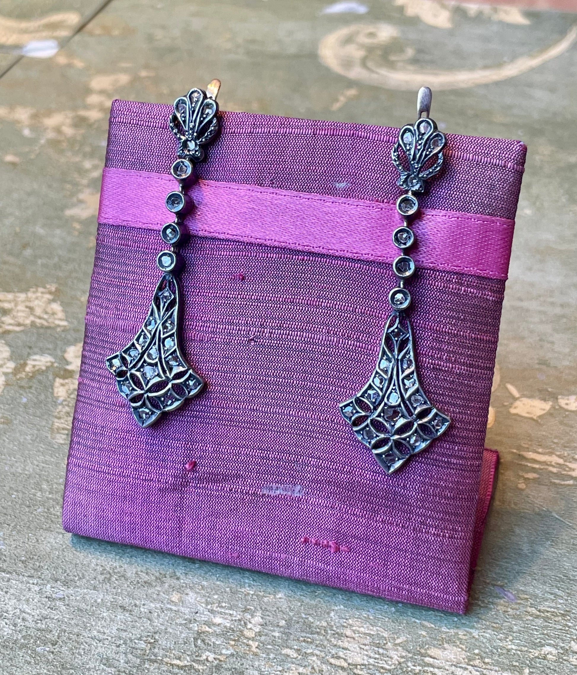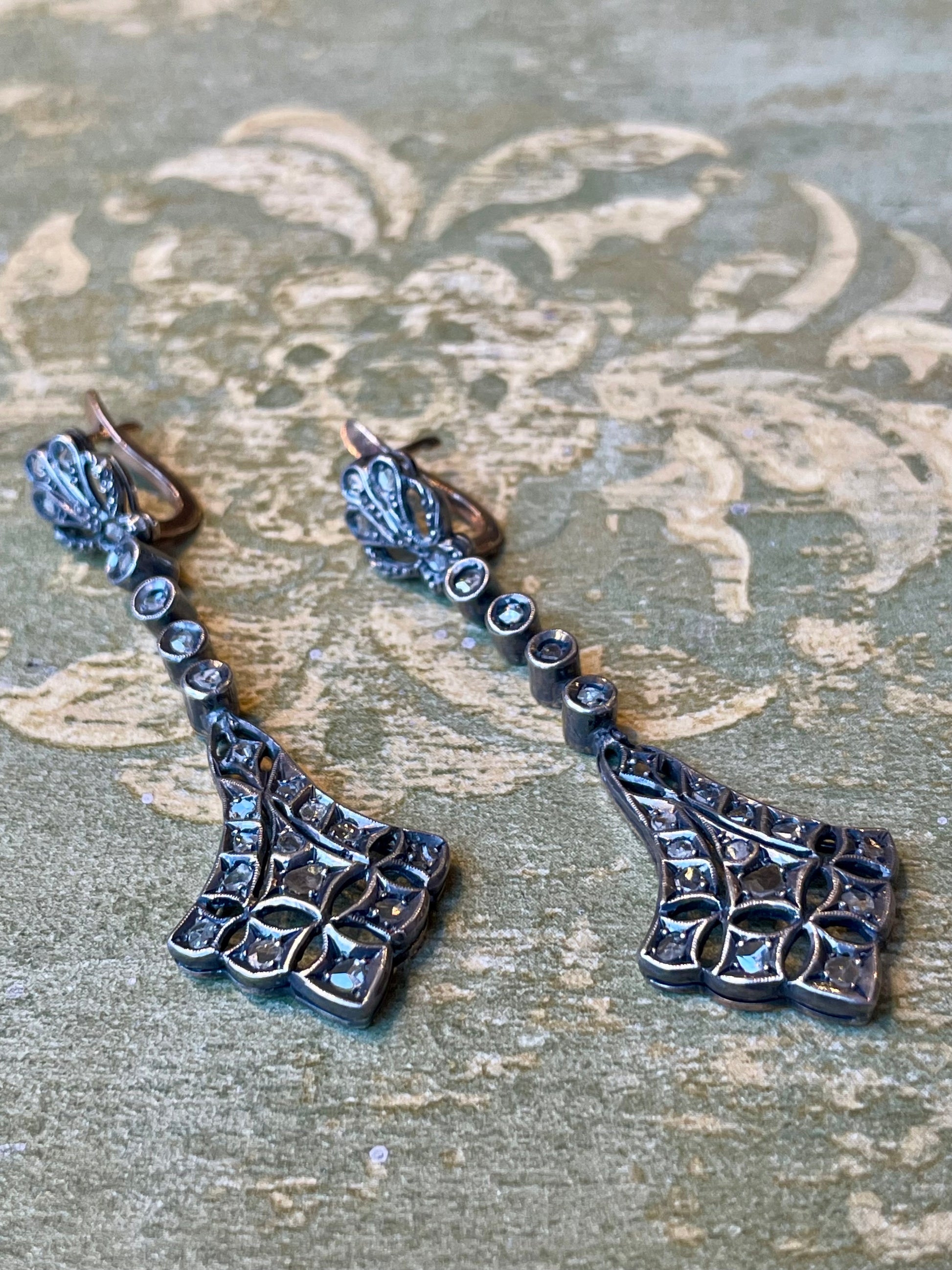 Affascinanti orecchini chandelier con rosette di diamanti, Art Nouveau