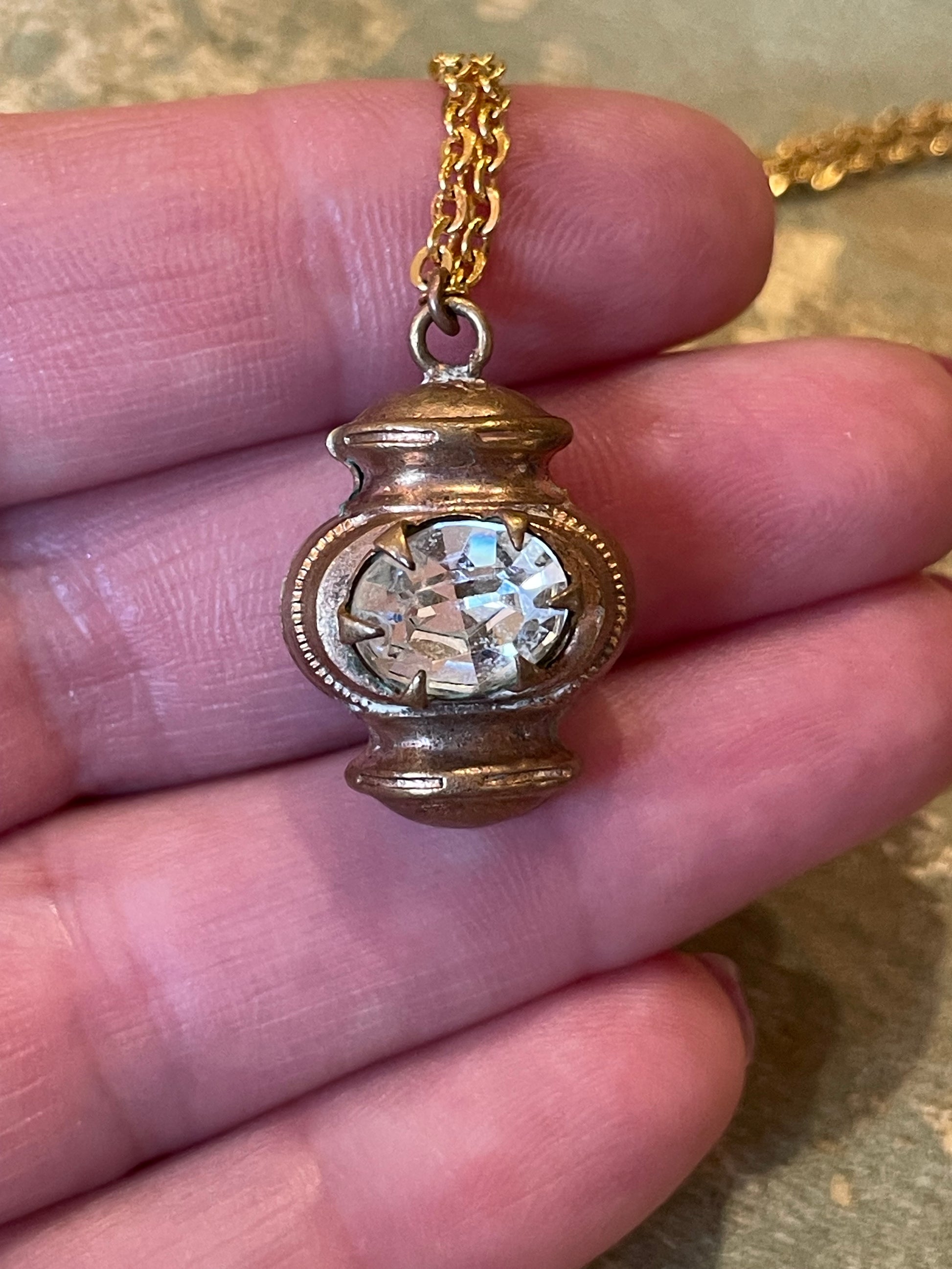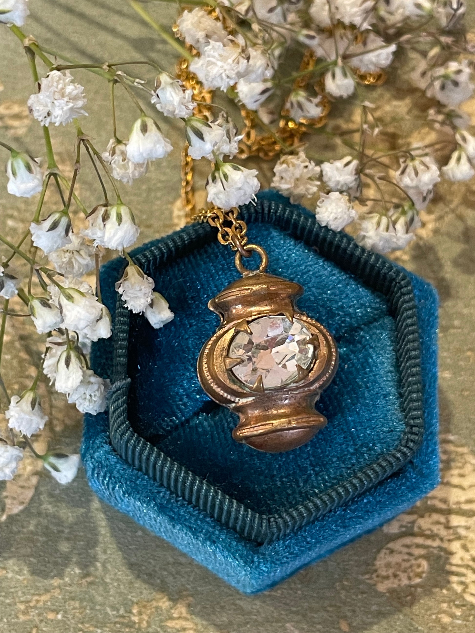 Curioso pendente a forma di lanterna con grande cristallo, anni ‘40