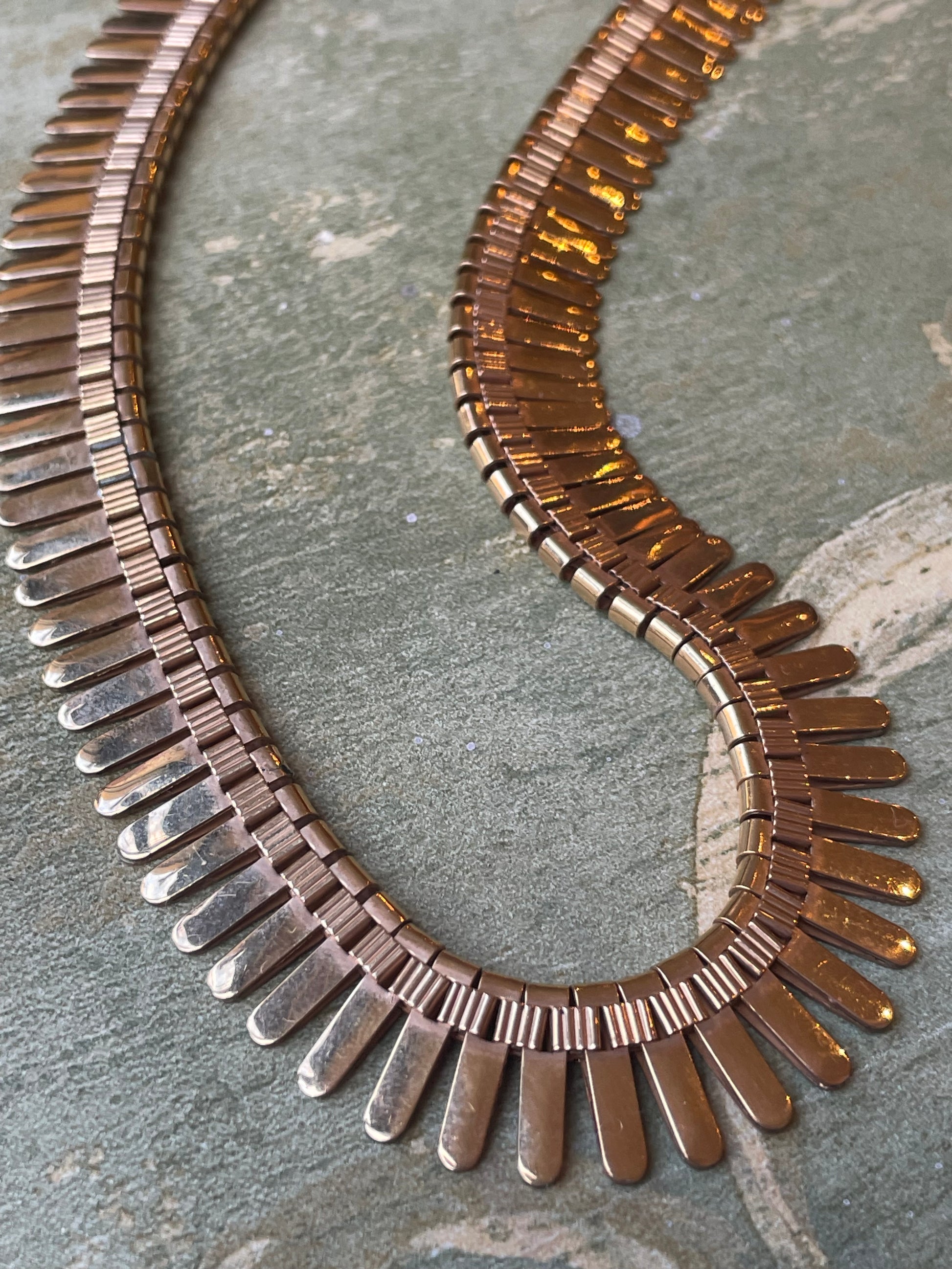 Stupenda la placcatura, tendente più all’oro rosa che giallo, che rende questo girocollo prezioso ed unico.