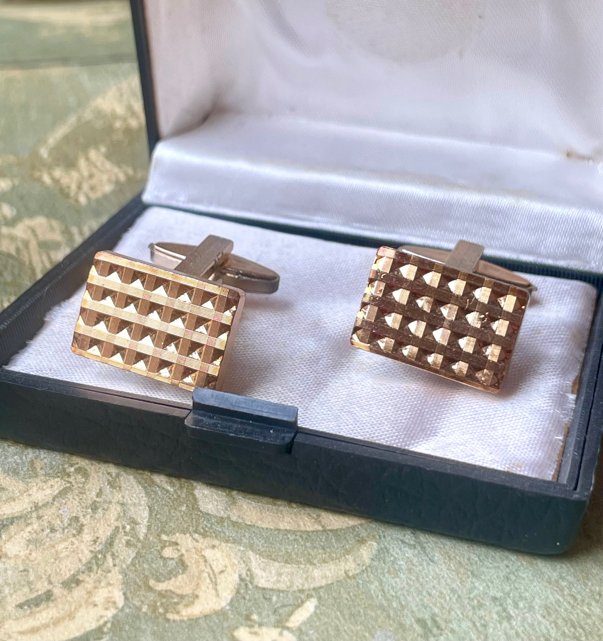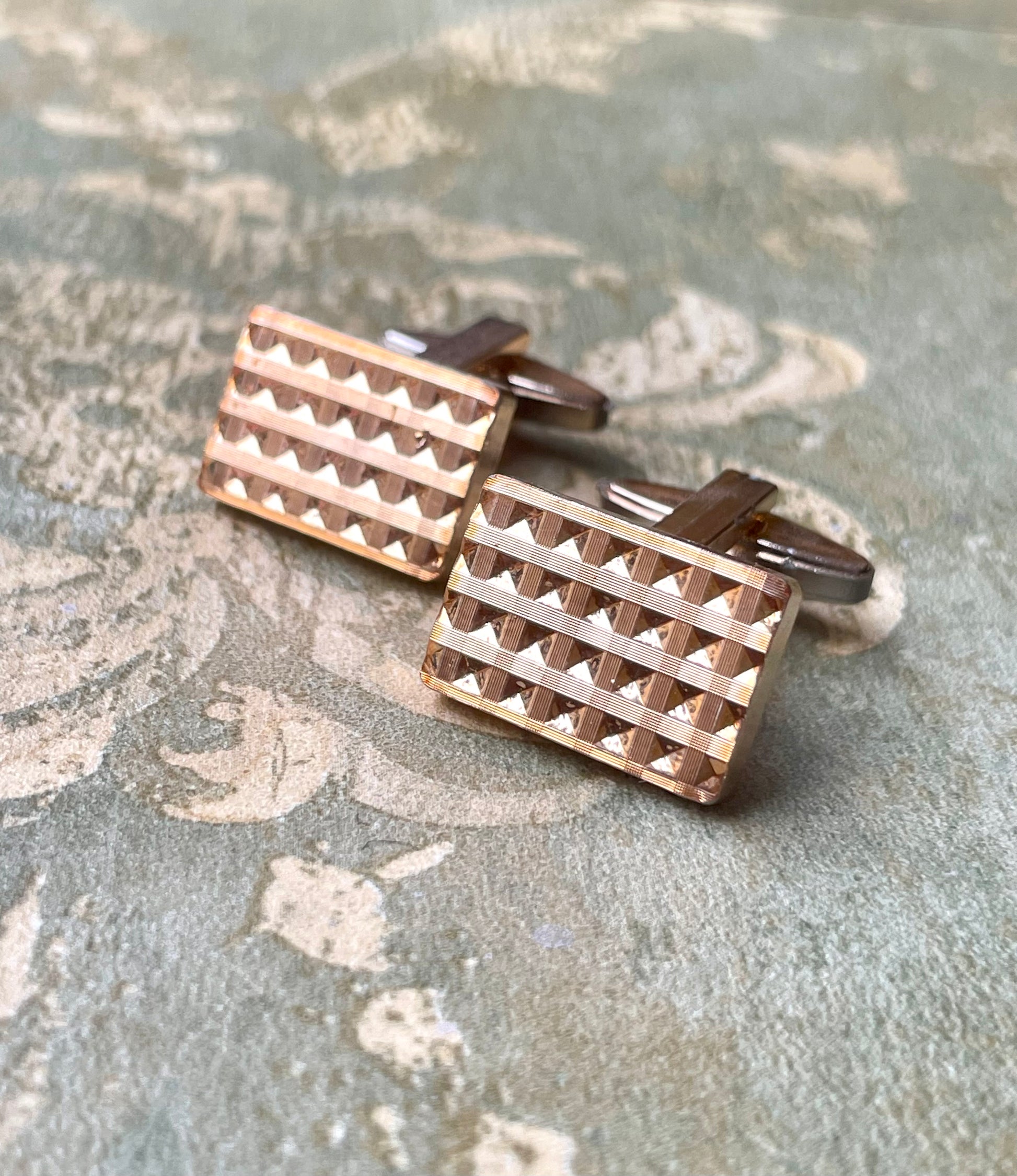 Classici ed intramontabili, questi piacevoli gemelli di forma rettangolare sono caratterizzati da una doratura su lamina incisa che ci regala un bel motivo decorativo geometrico molto raffinato.