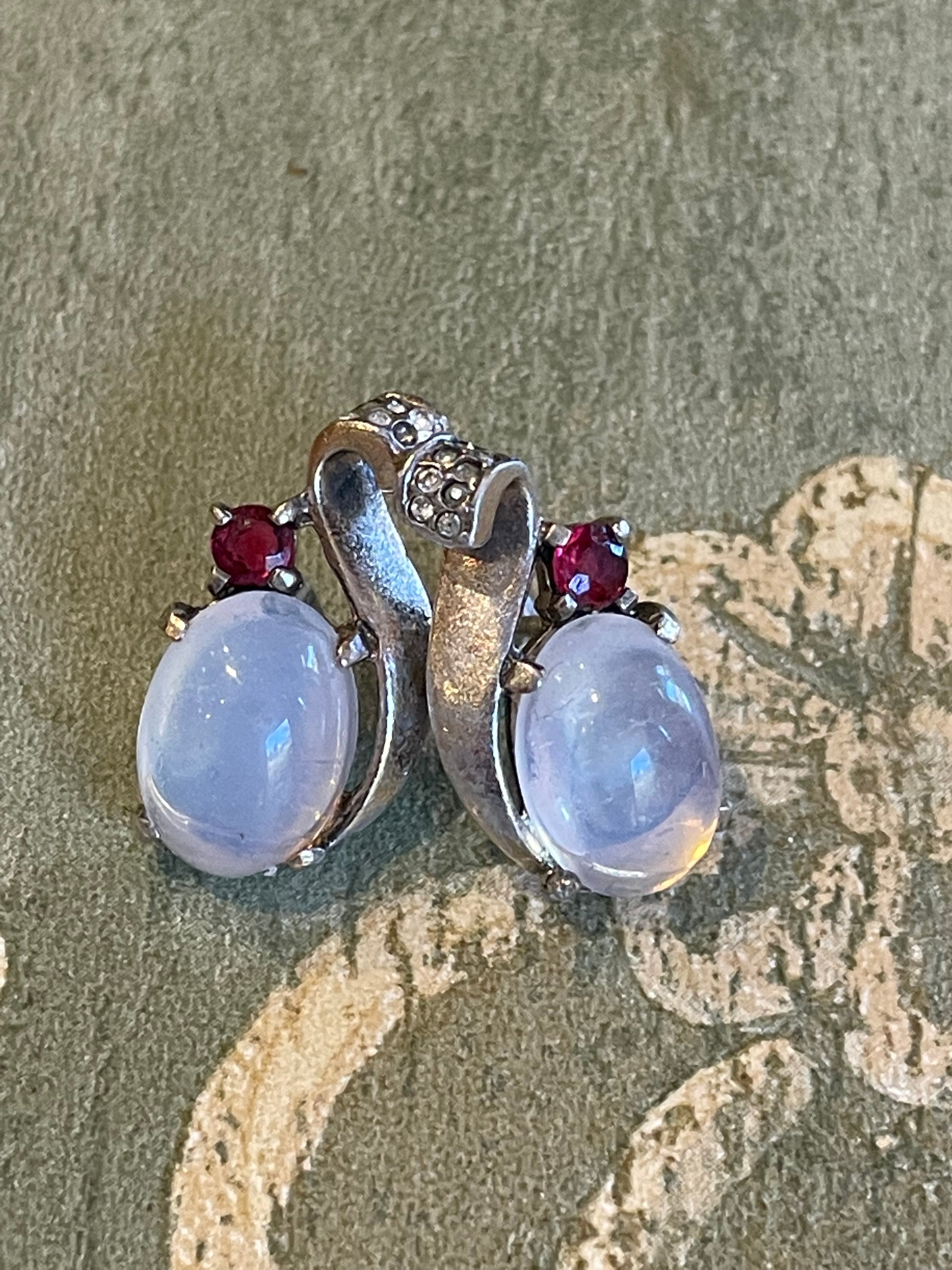 Orecchini in argento e claire de lune, Trifari, anni ‘40/50