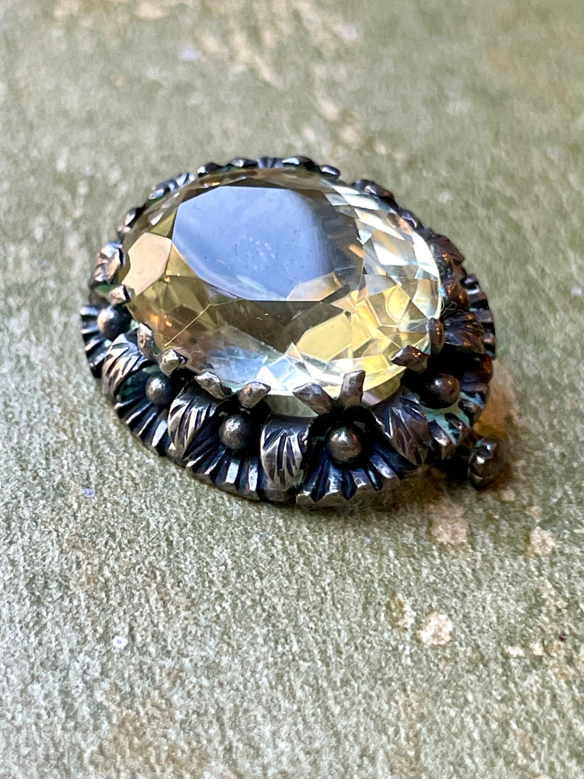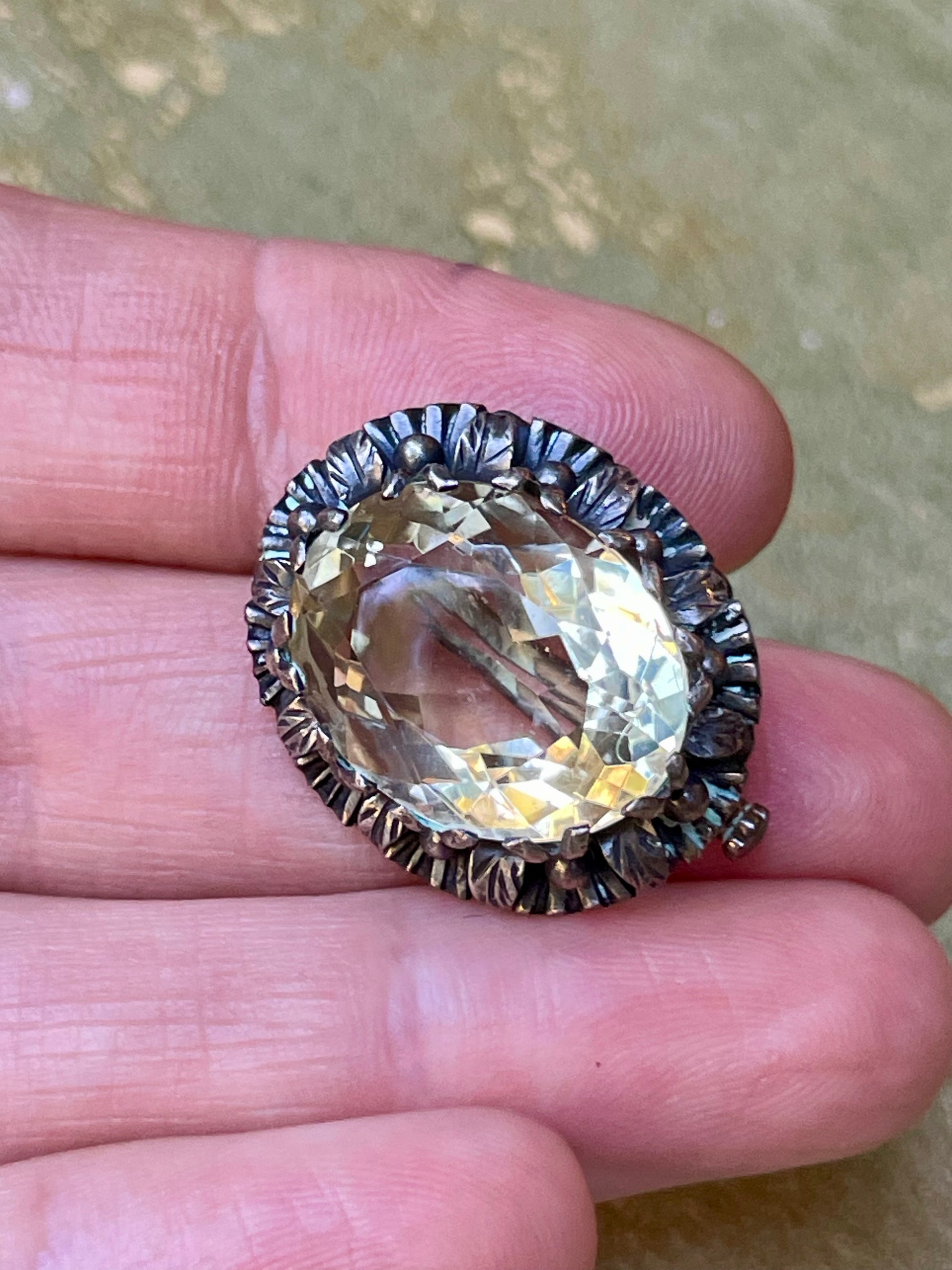 Raffinata spilla in argento con grande quarzo citrino, epoca vittoriana