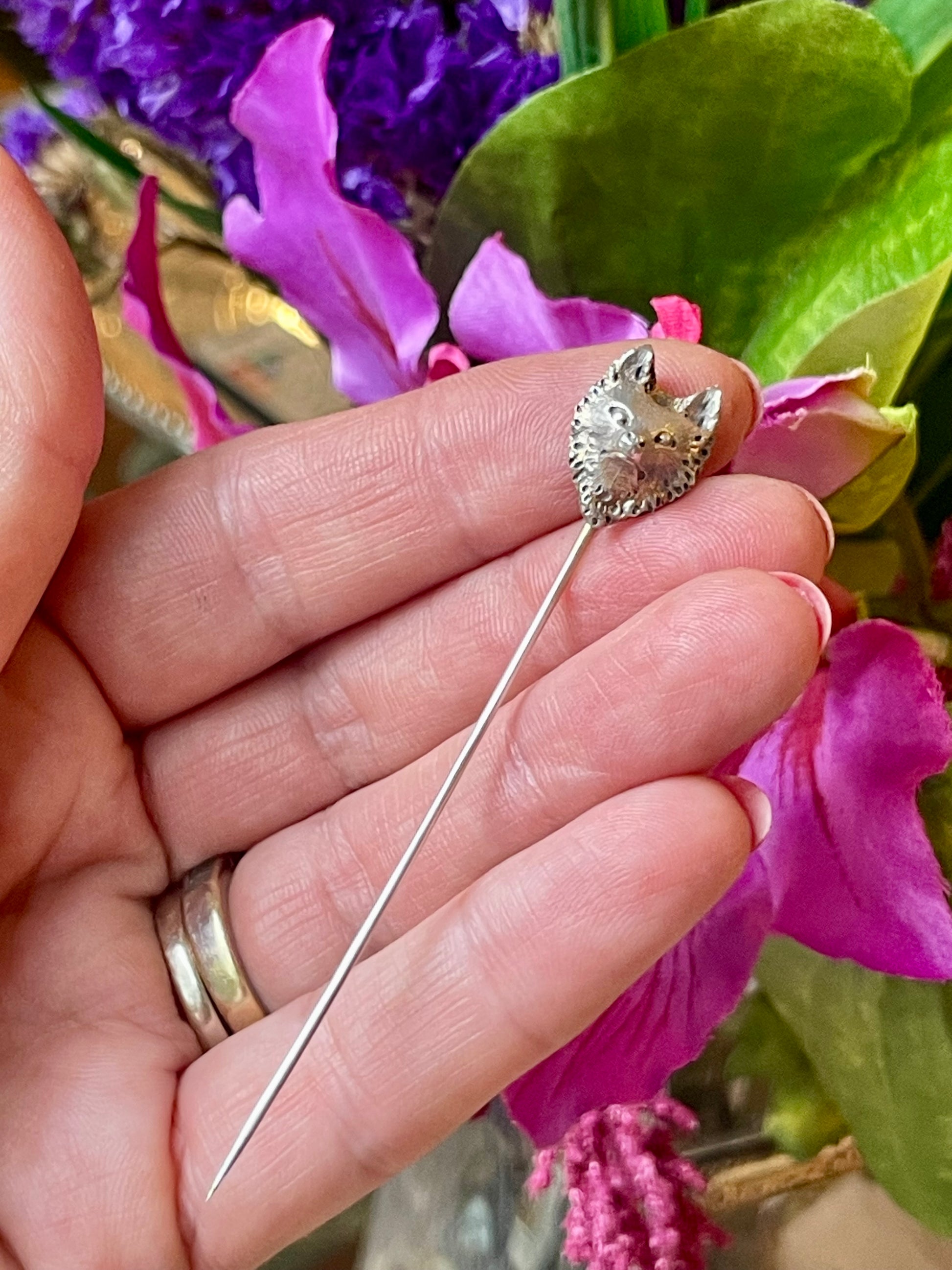 Spilla da cravatta in argento con piccola volpe, fine Ottocento, inizio Novecento