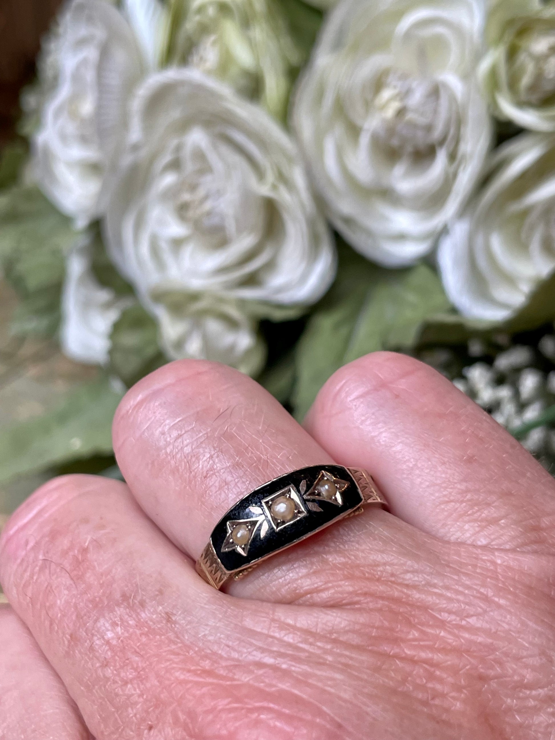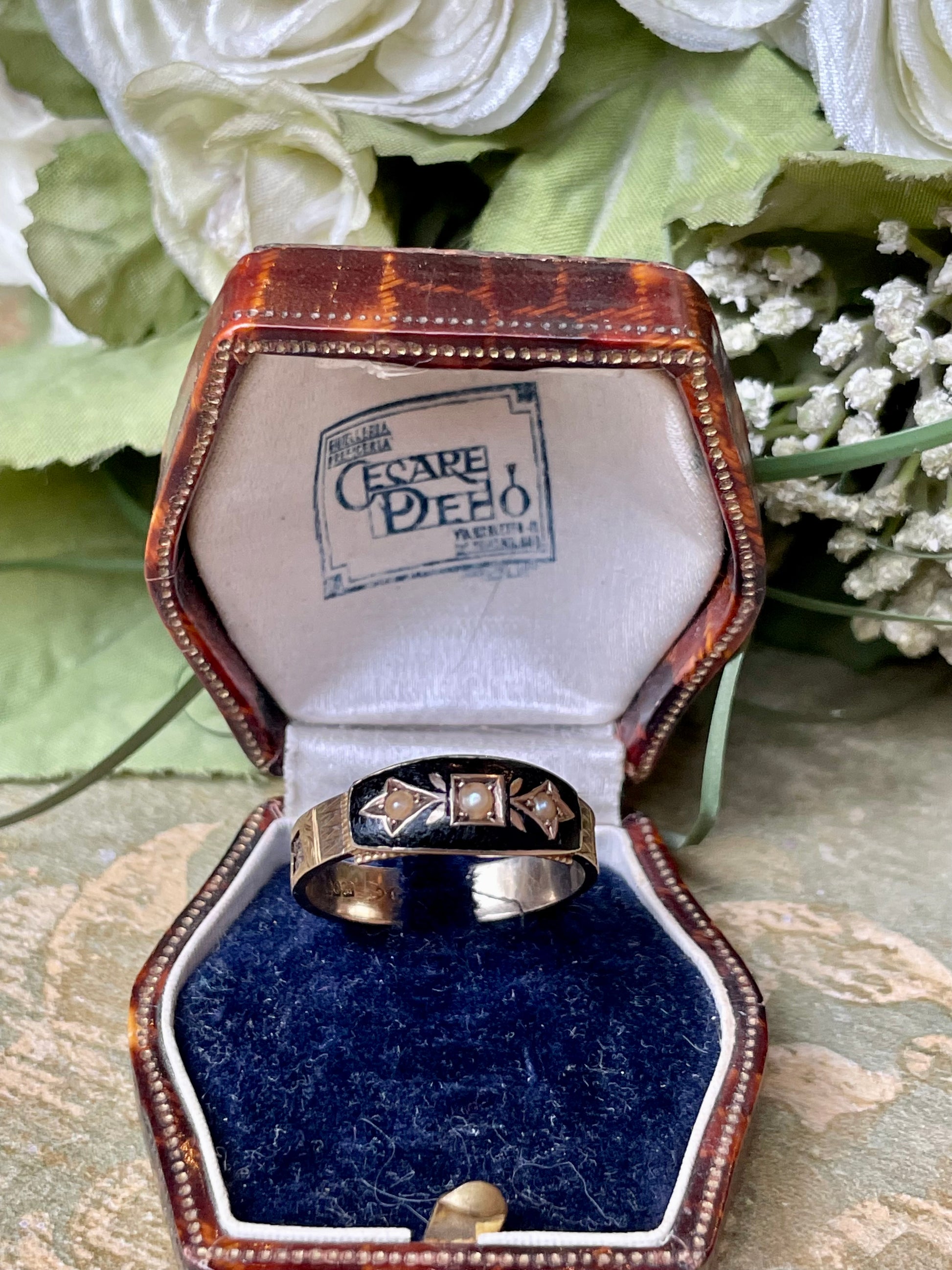 Squisito anello Souvenir vittoriano in smalto, metà Ottocento