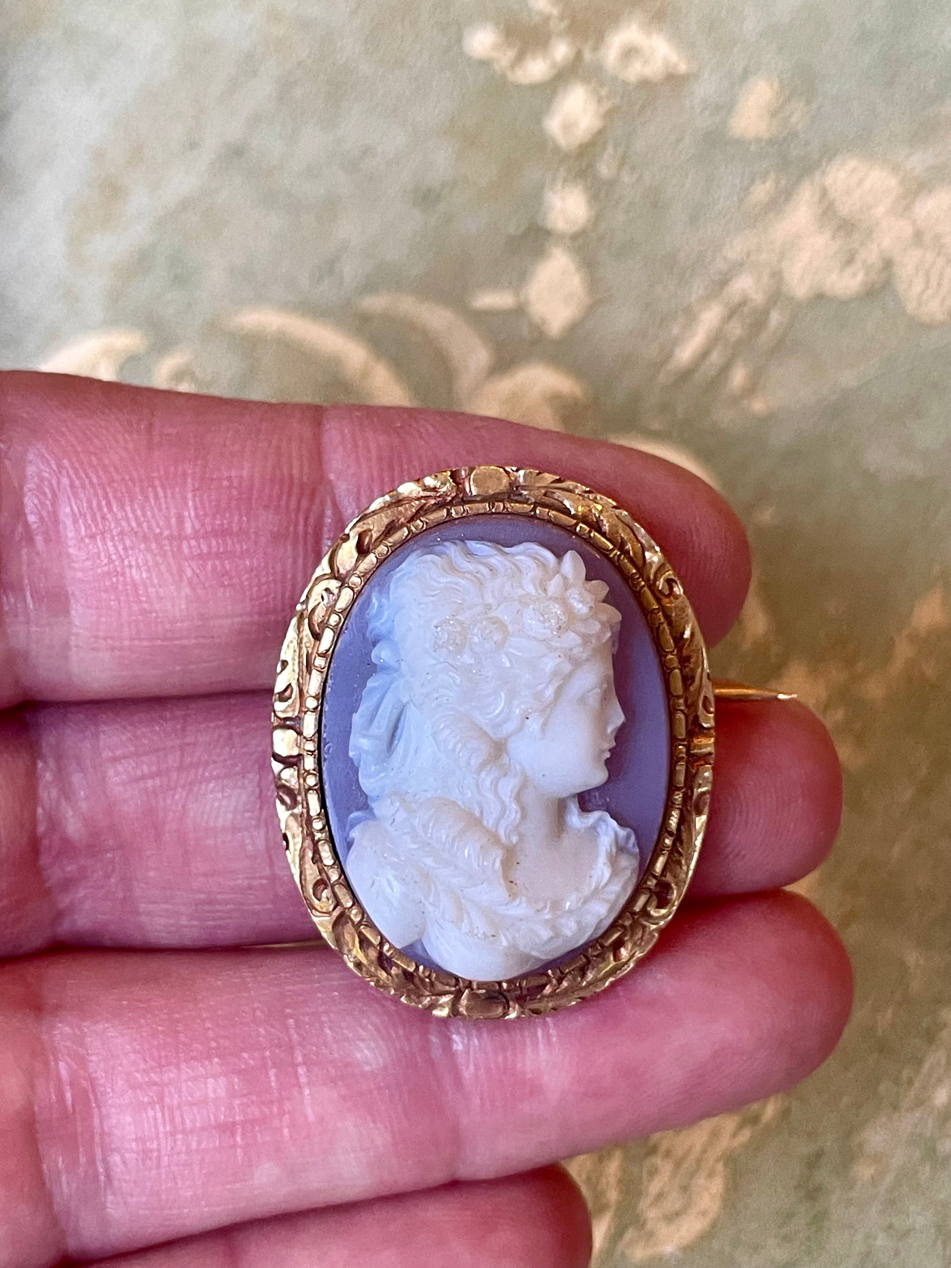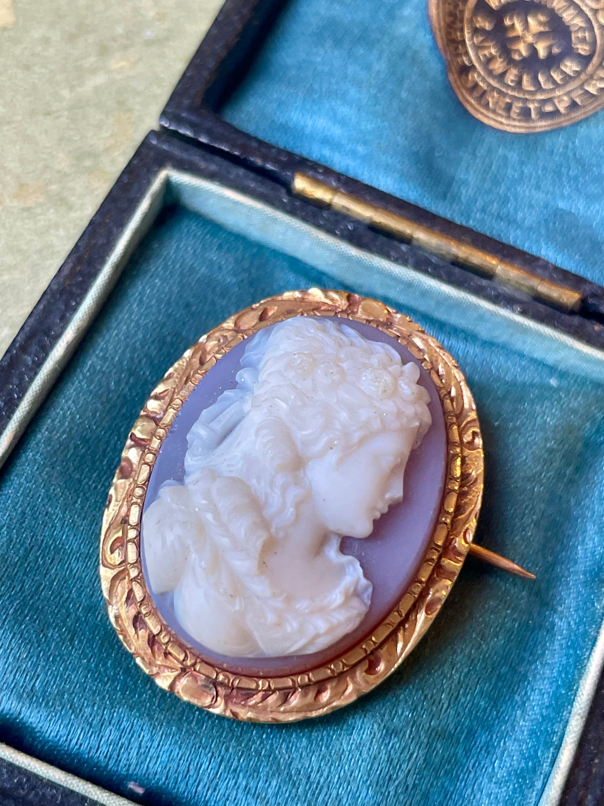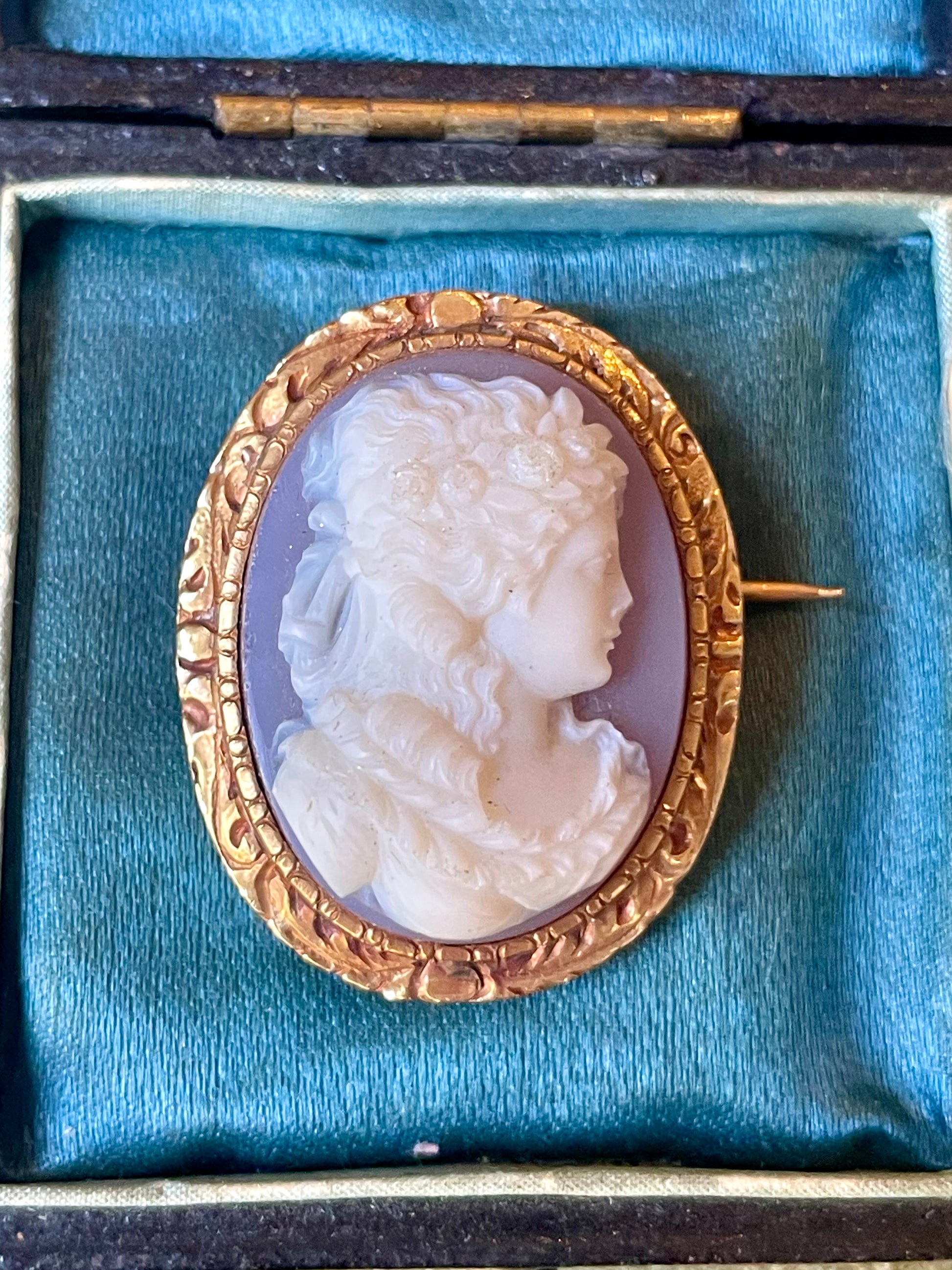 Stupenda spilla vittoriana con cammeo in agata