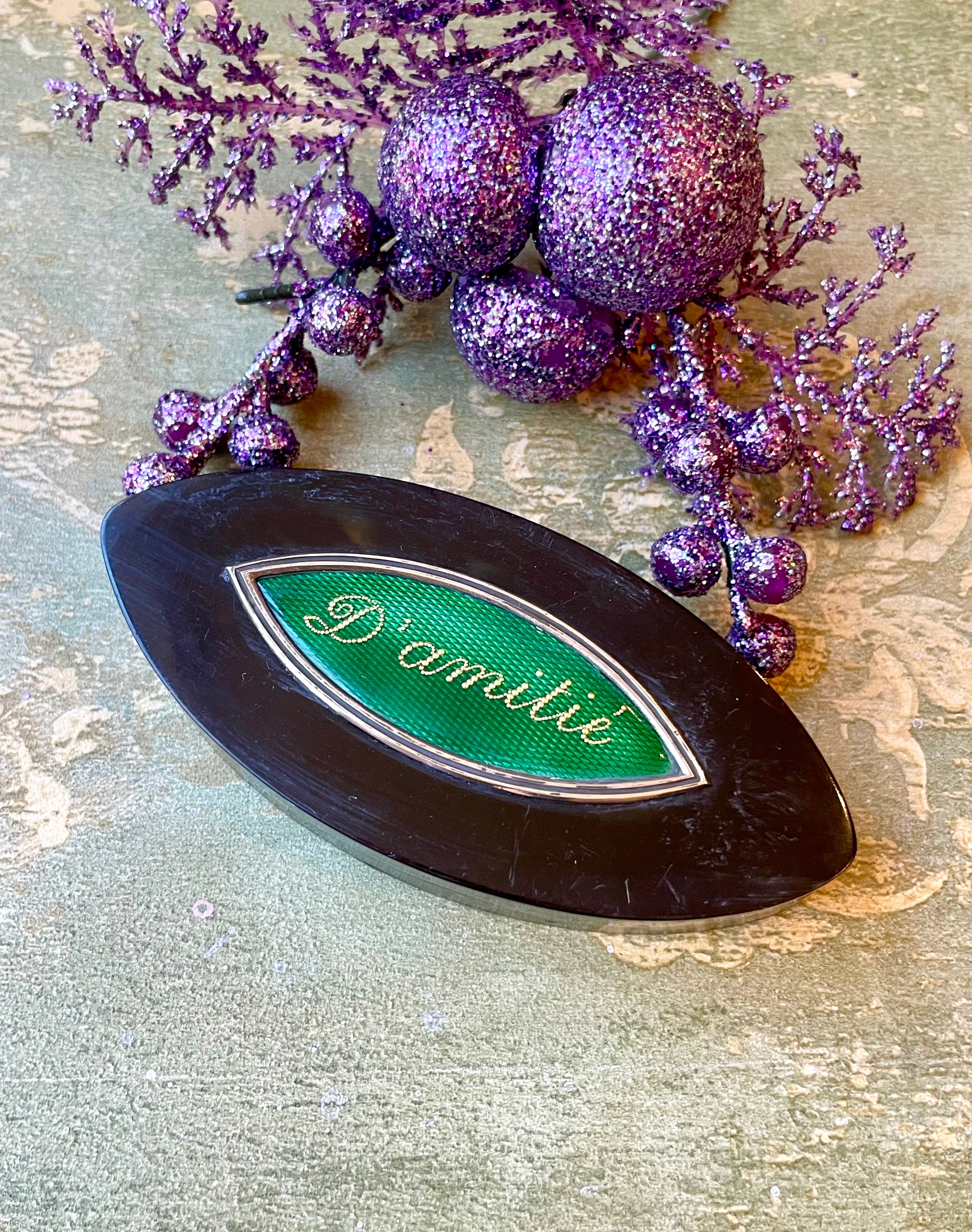 Tabacchiera in smalto e argento con motto “D’amitie’”, Francia 1850/60