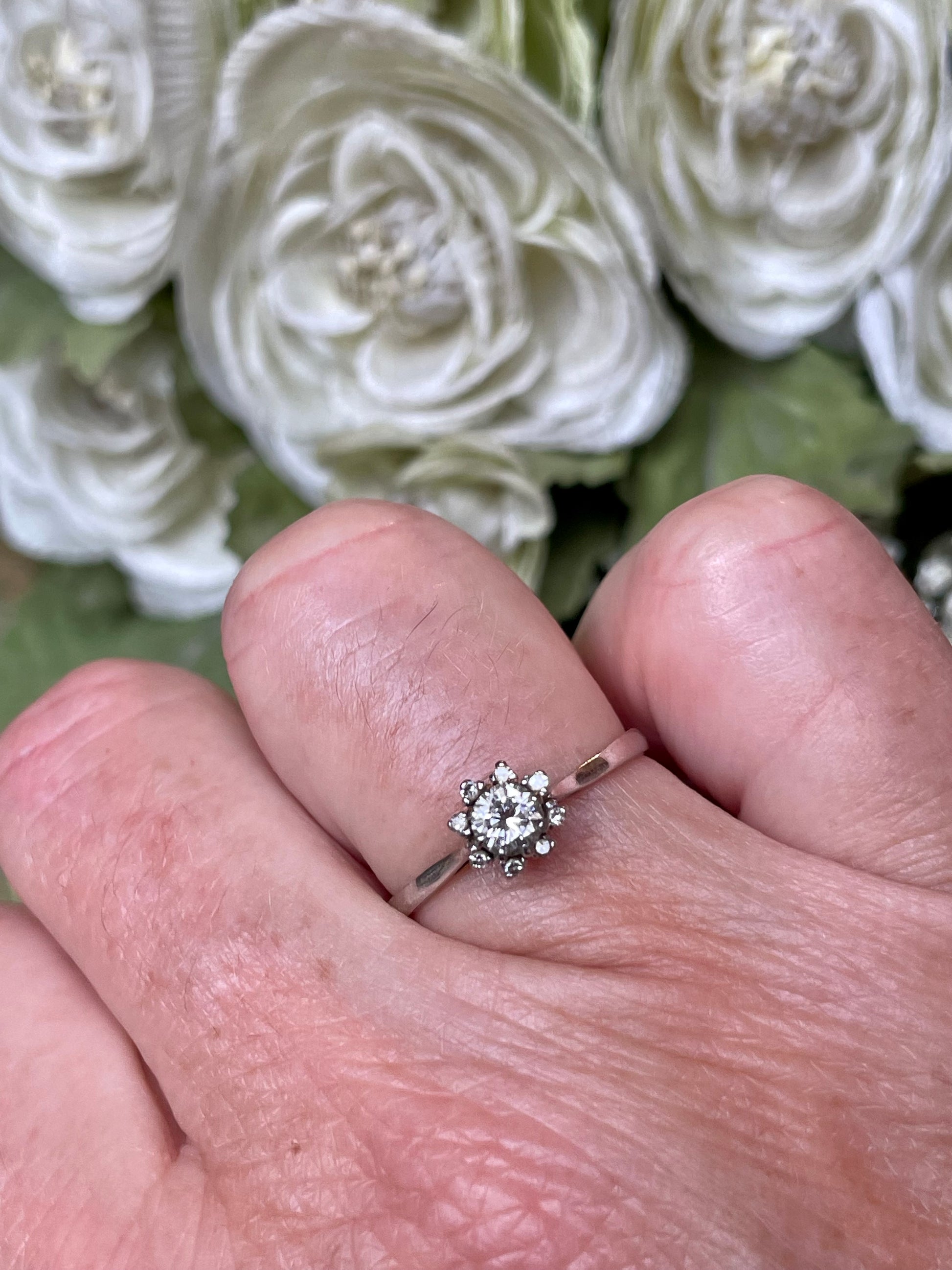 Anello amore eterno a margherita con solitario, anni ‘30/40