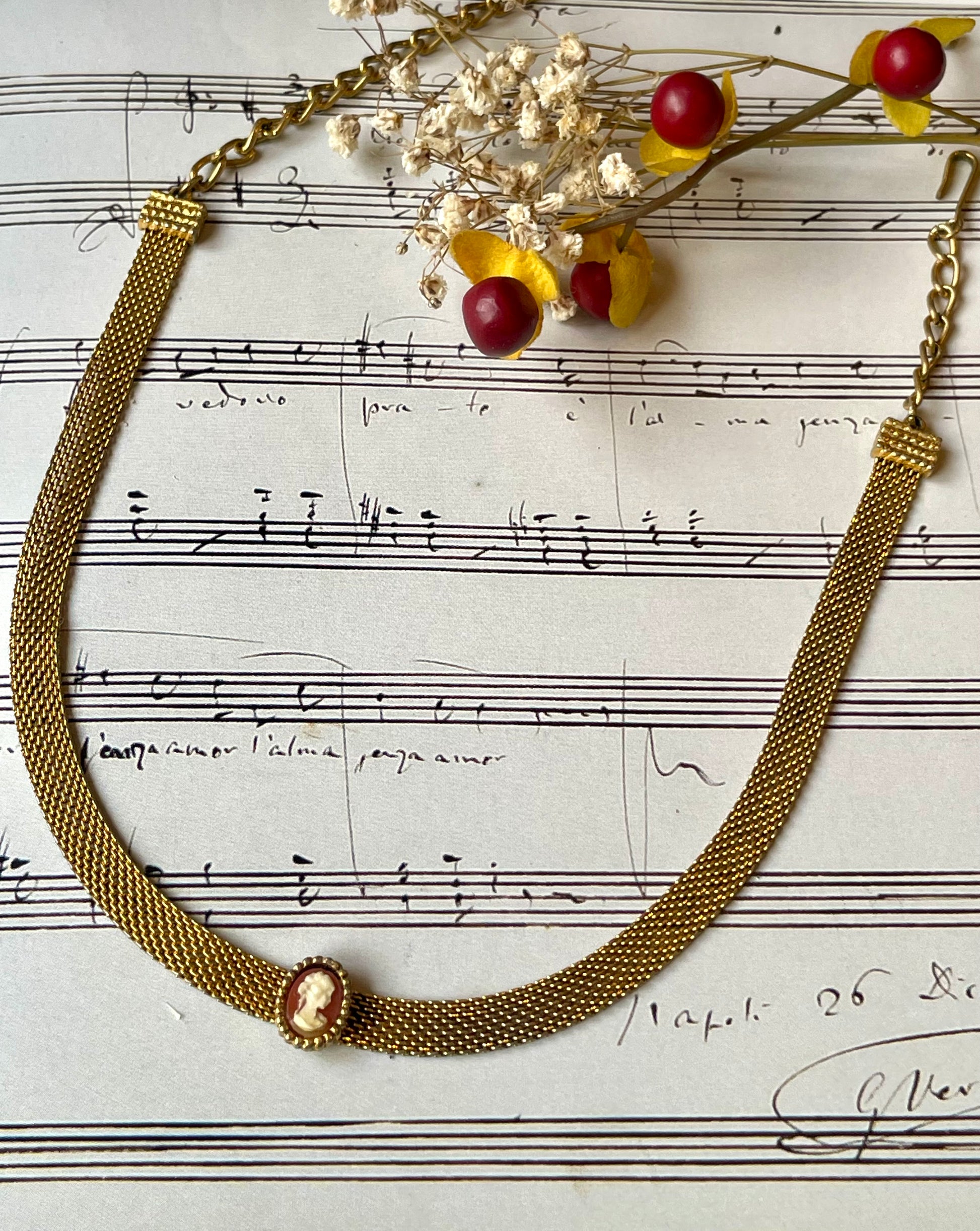 Choker dorato con piccolo cammeo, anni ‘50