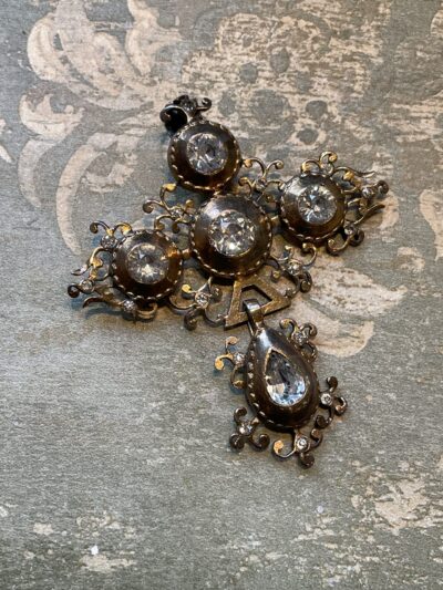 Pendente con croce di Saint Lò in vermeil e cristalli di Alençon.