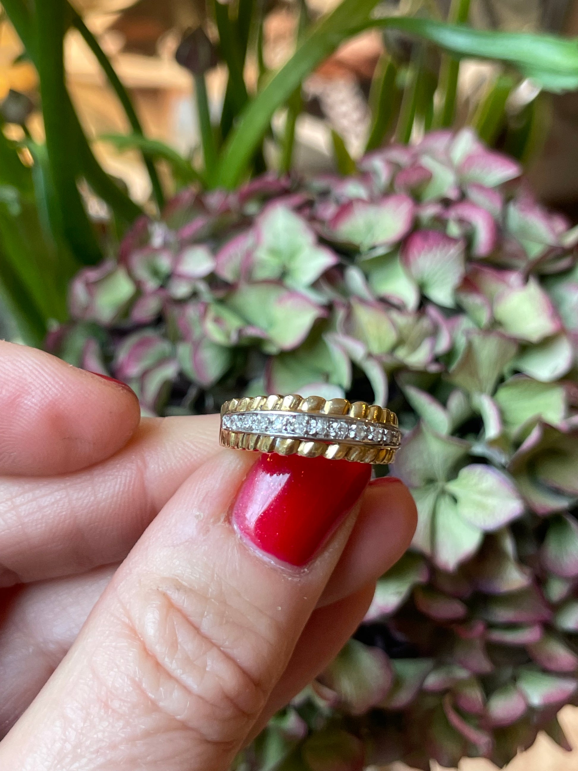 Fascia in oro giallo con pave’ di diamanti, anni ‘70