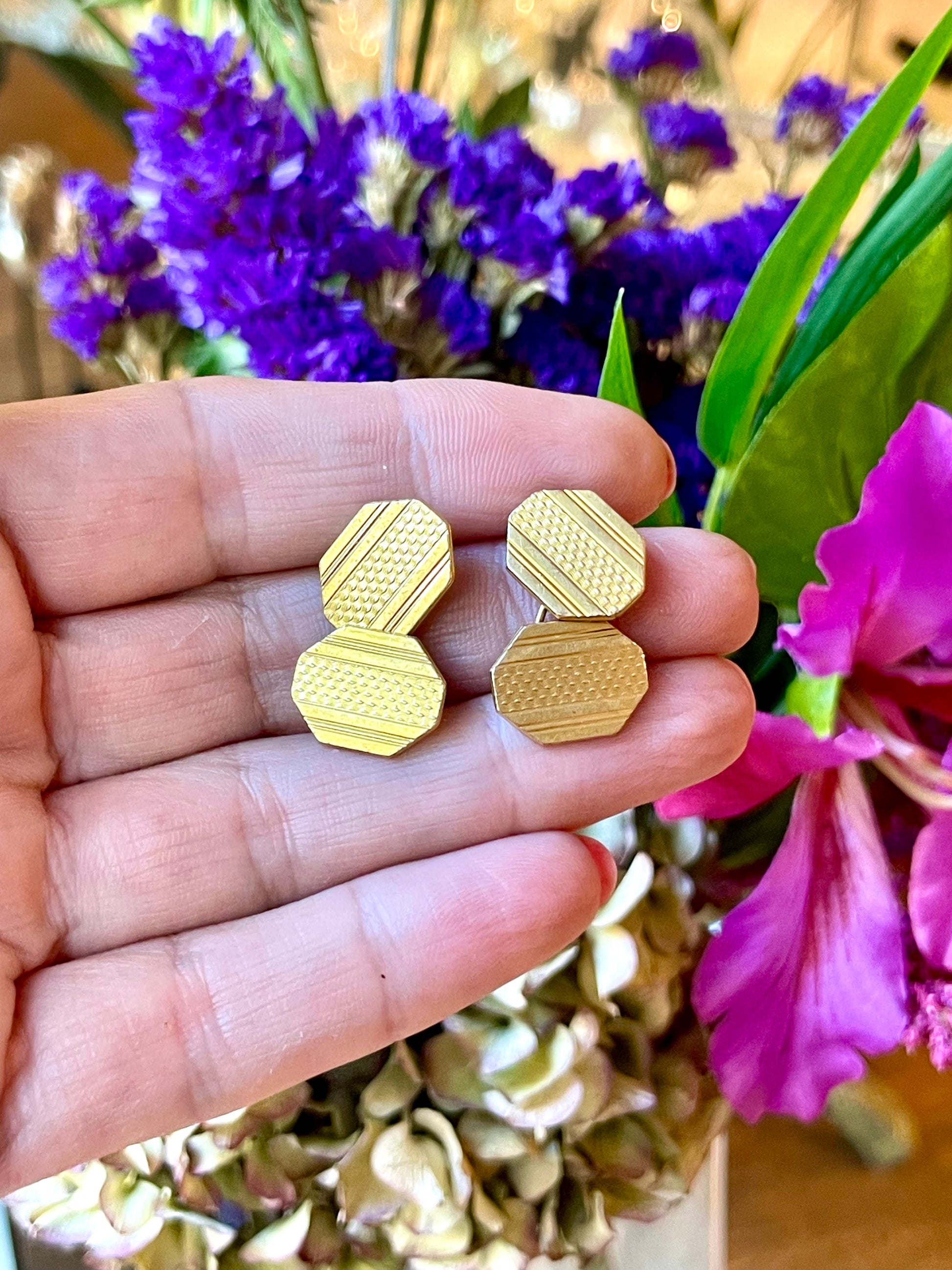 Così luminosi, vibranti, sono inciso con un elegante motivo satinato dal gusto geometrico ed essenziale. Raffinati nel design ottagonale, sono un gioiello evergreen.