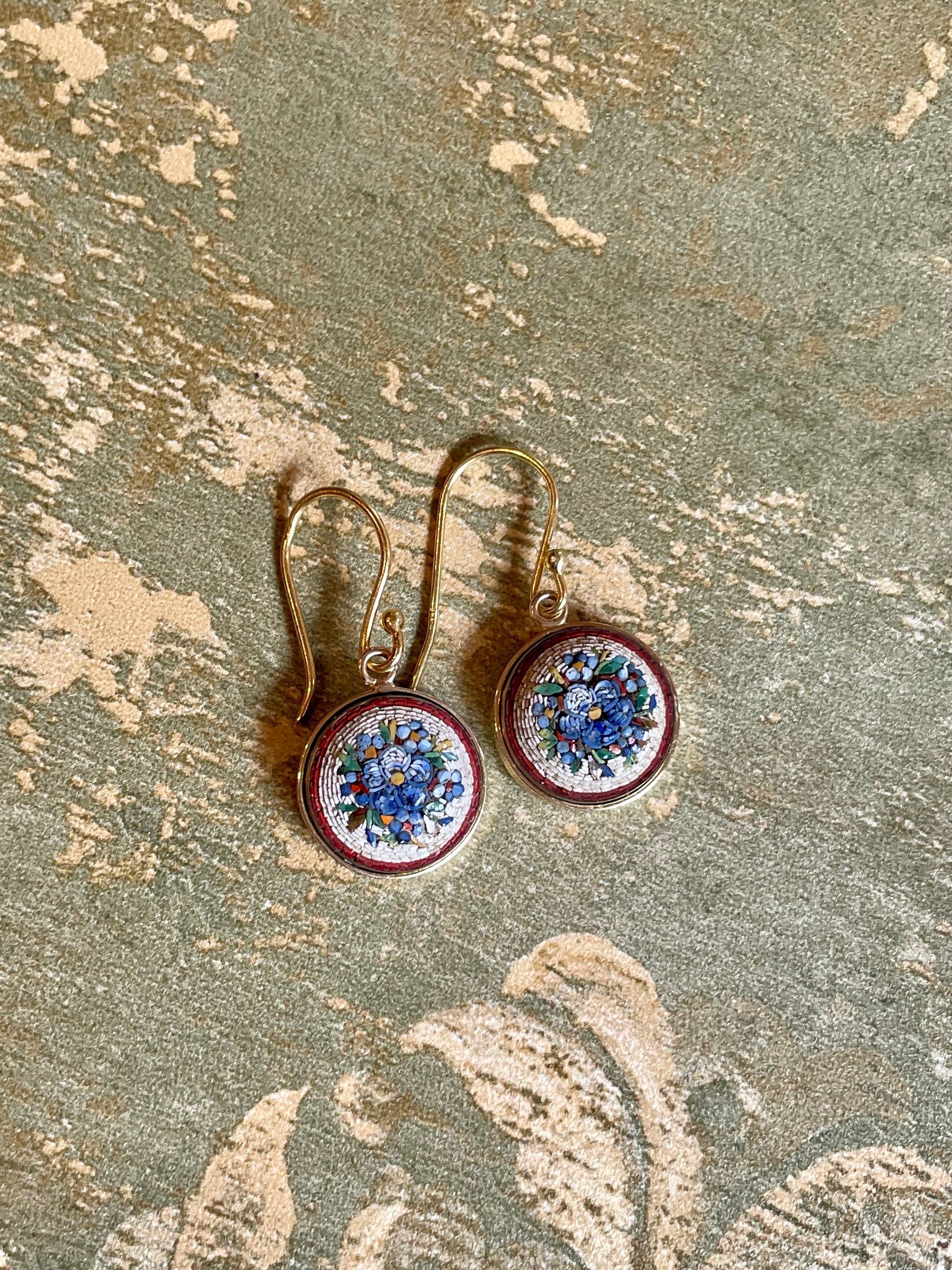 Orecchini con bouquet floreale in micromosaico, Roma ,1830/40