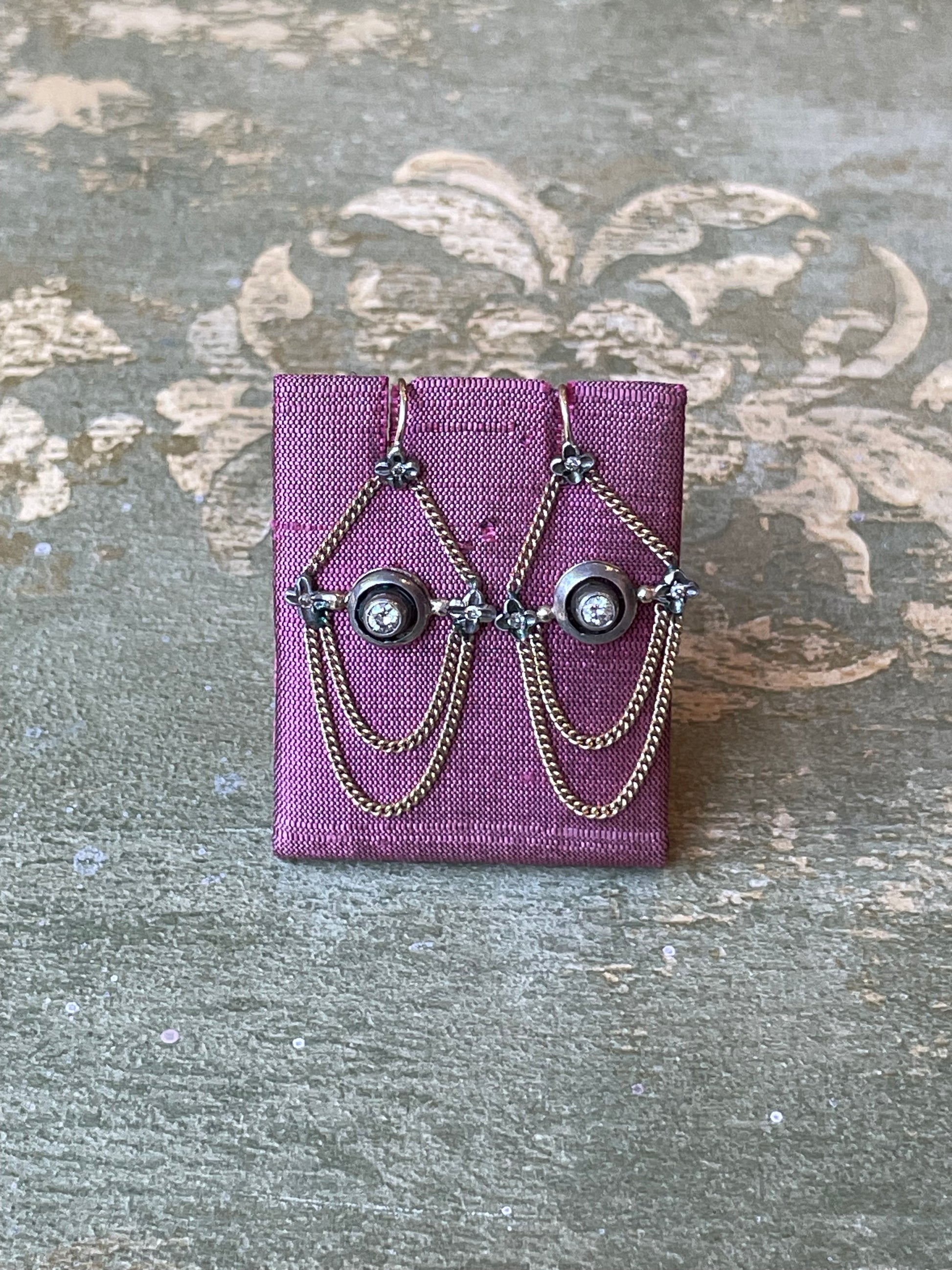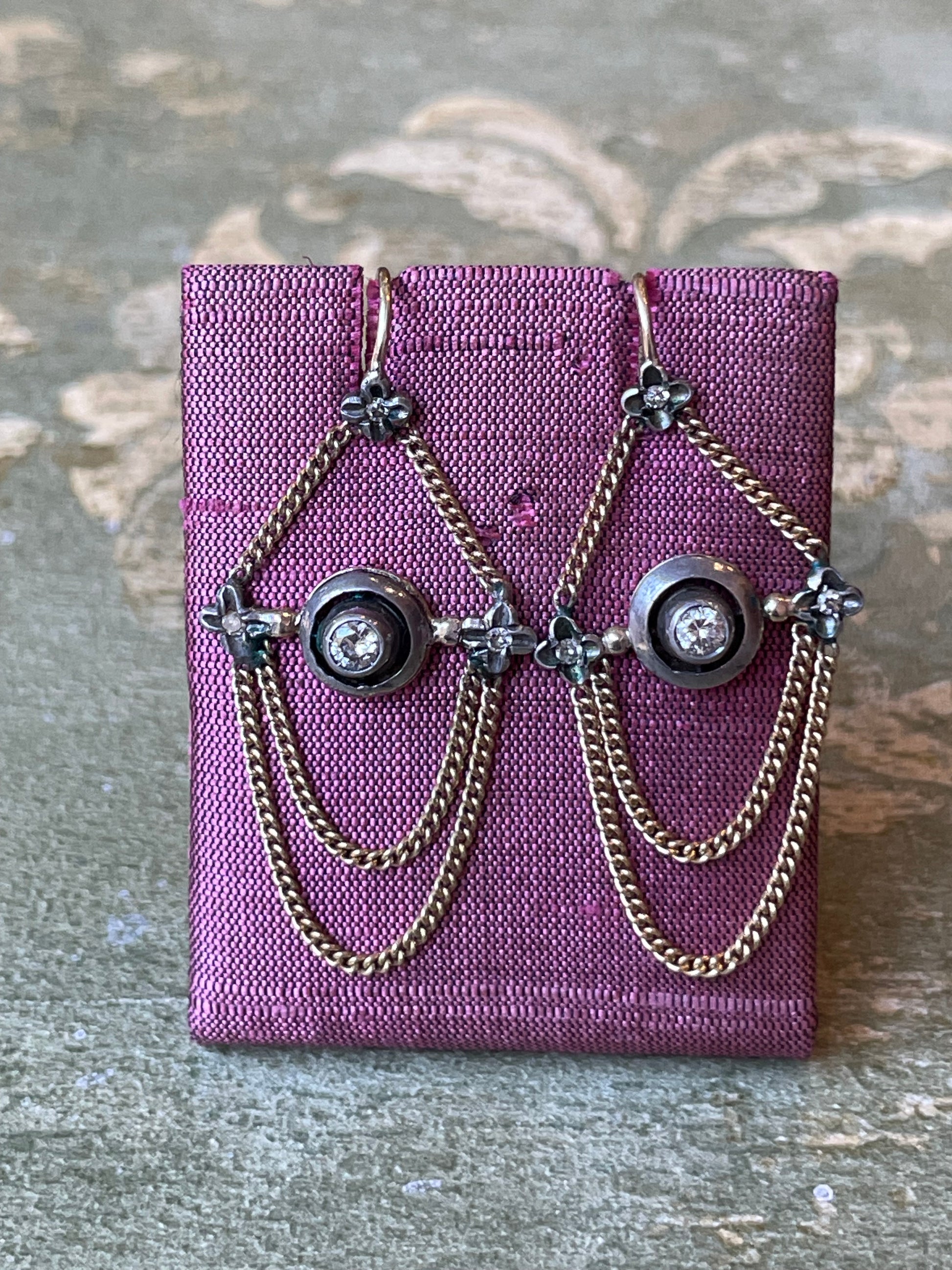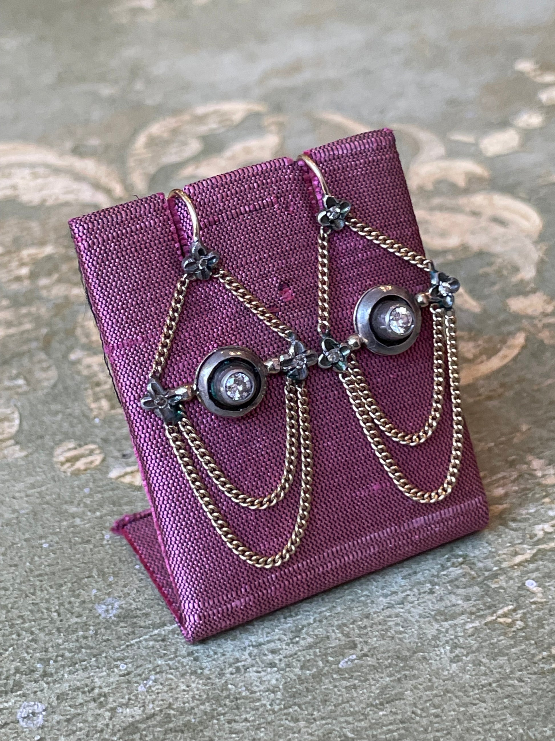 Leggeri, sottili, delicati e versatili, questi orecchini sono caratterizzati da un originale modello a doppia catena, di ispirazione ottocentesca.