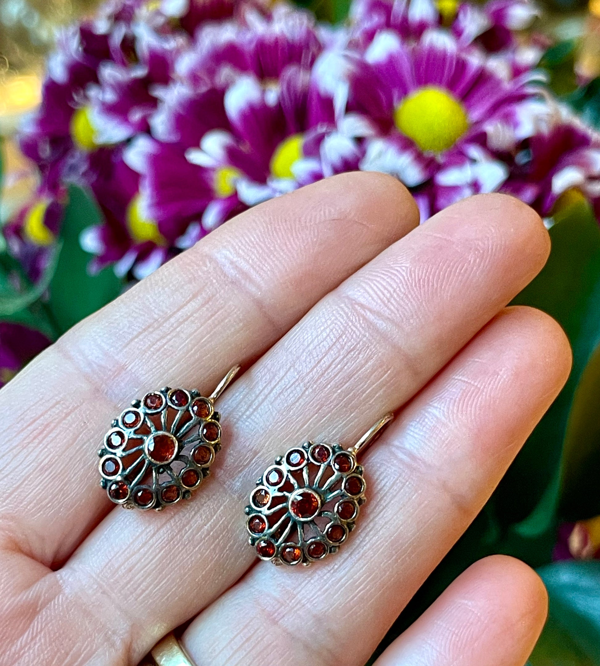 Orecchini con granato spessartite e vermeil, anni ‘50