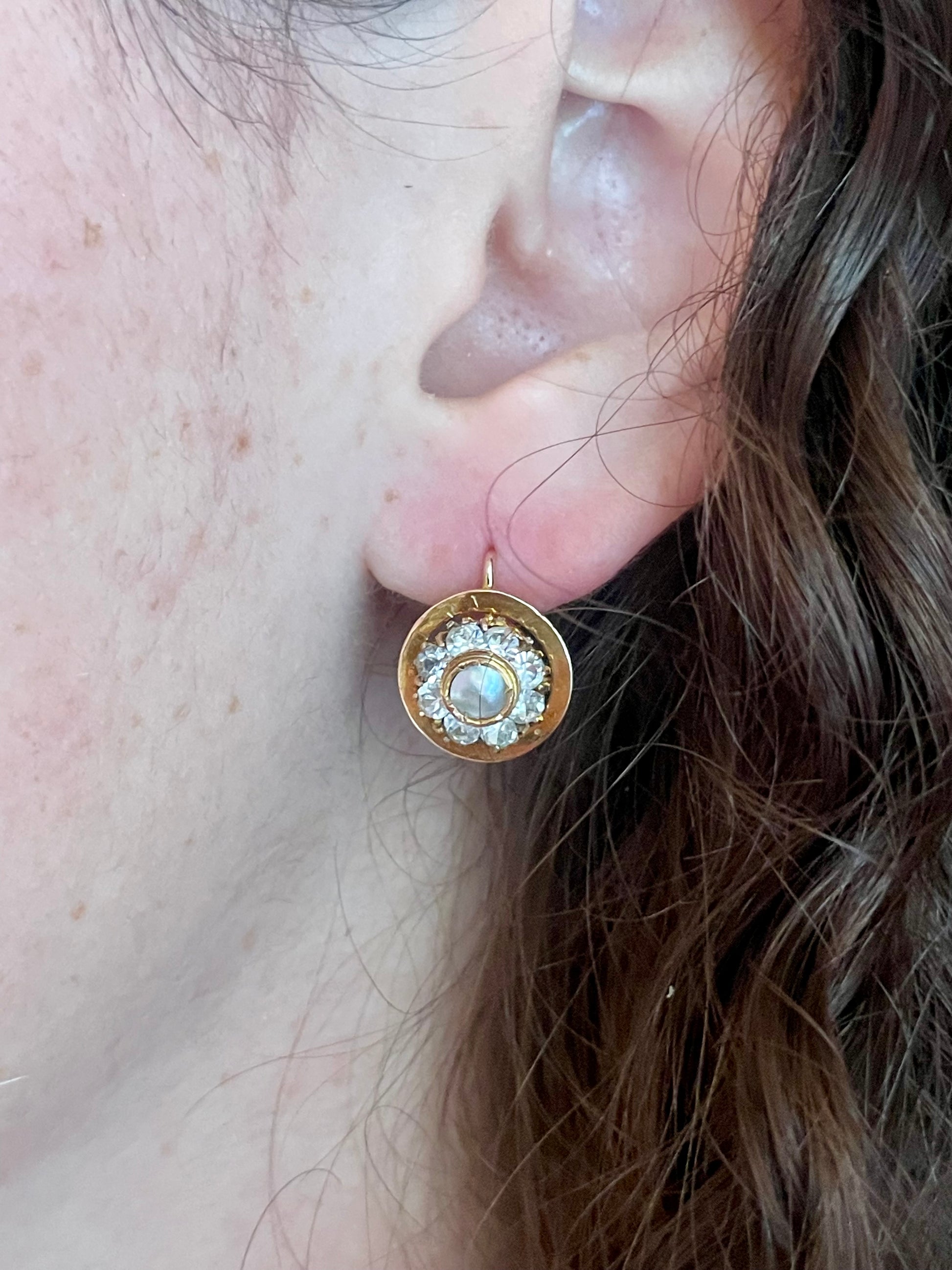 Preziosi e molto luminosi, questi orecchini sono un must per tutti coloro che amano le toppe, cioè gli orecchini antichi dalla forma rotonda e piatta.