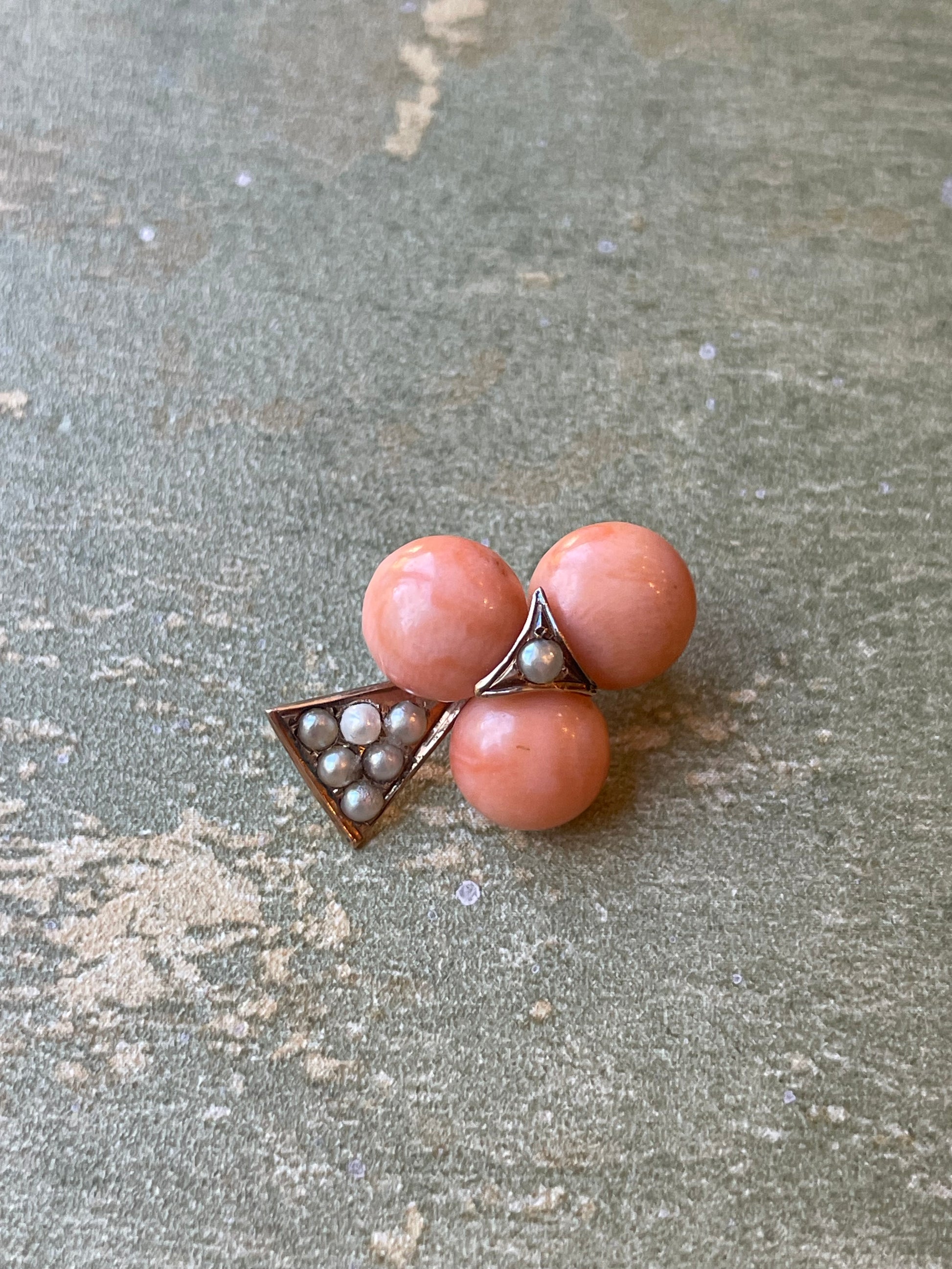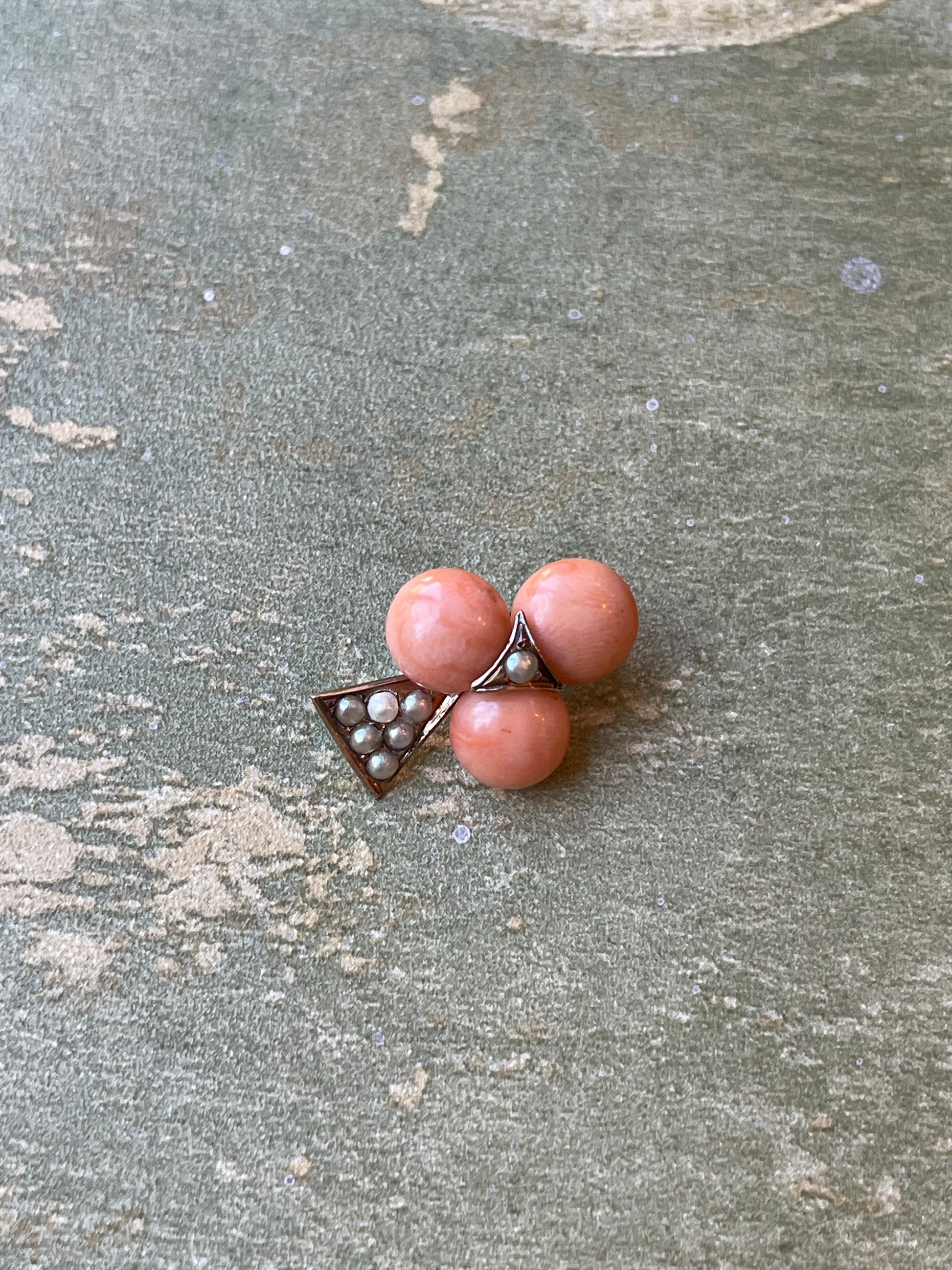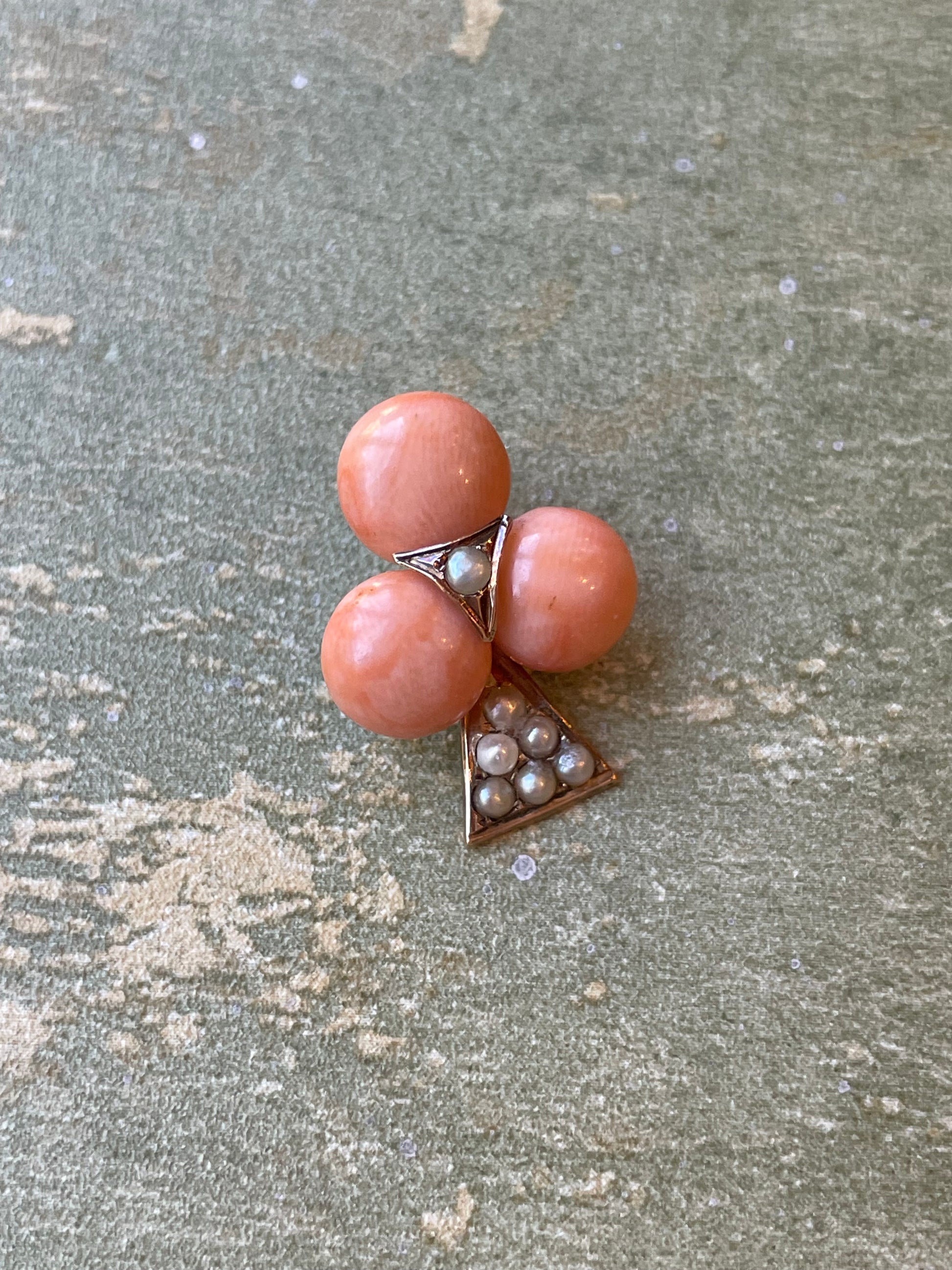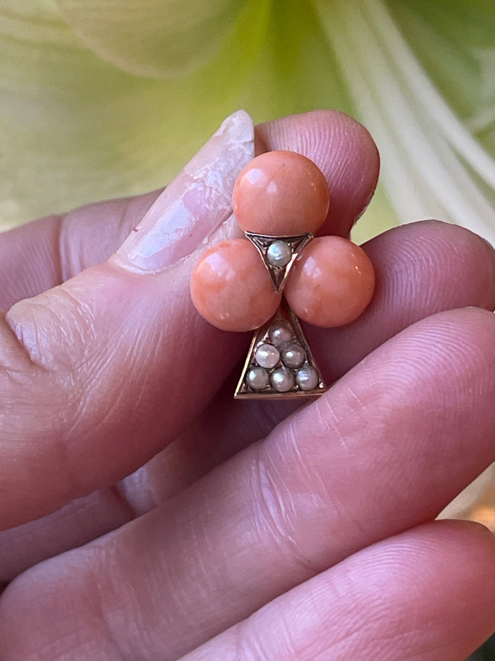 Pendente Trifoglio in oro, corallo e perle, epoca vittoriana
