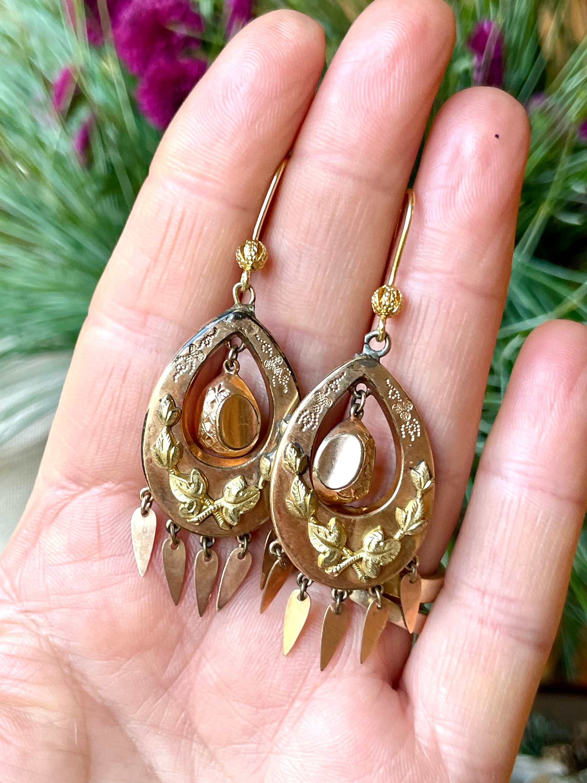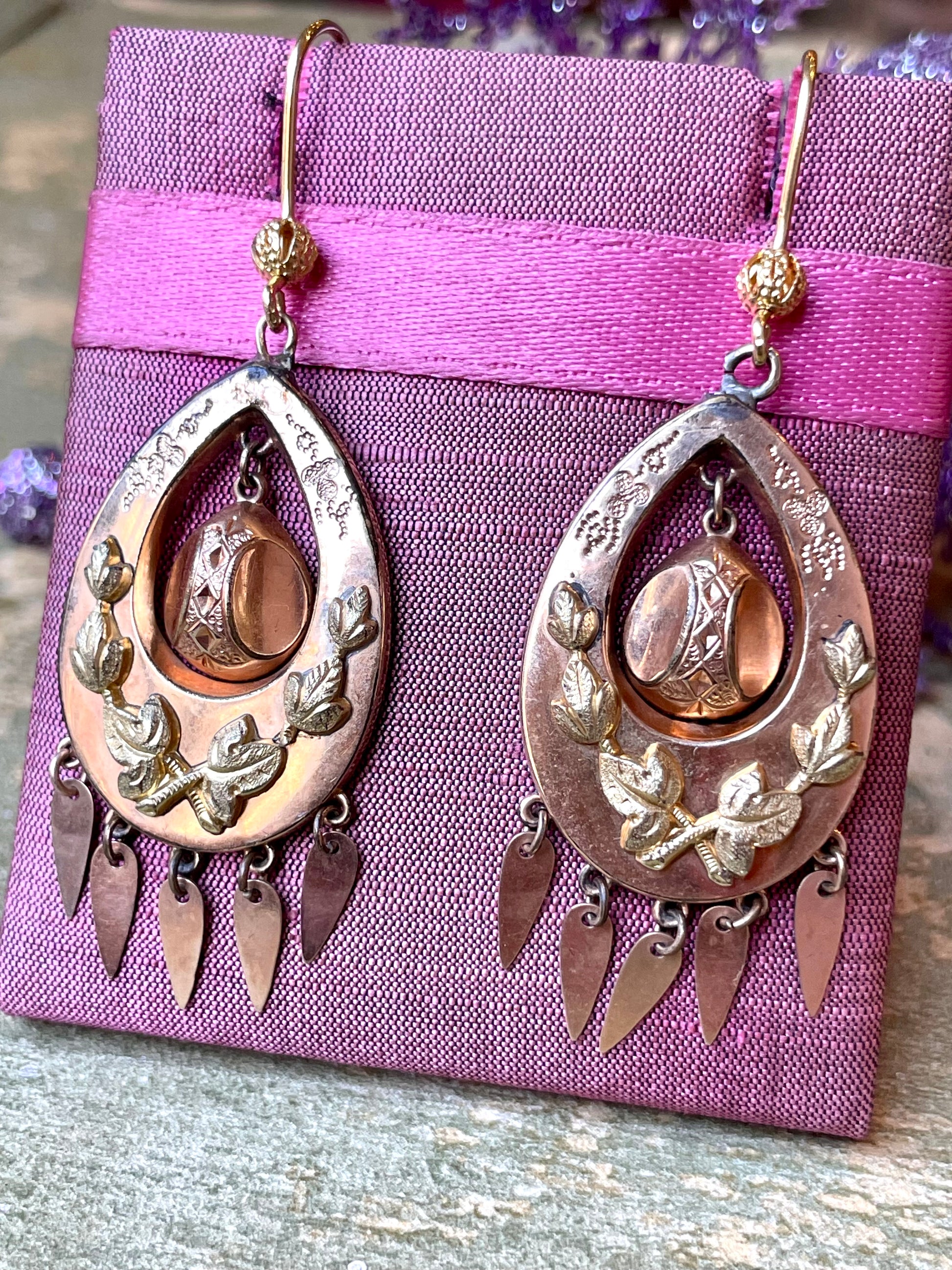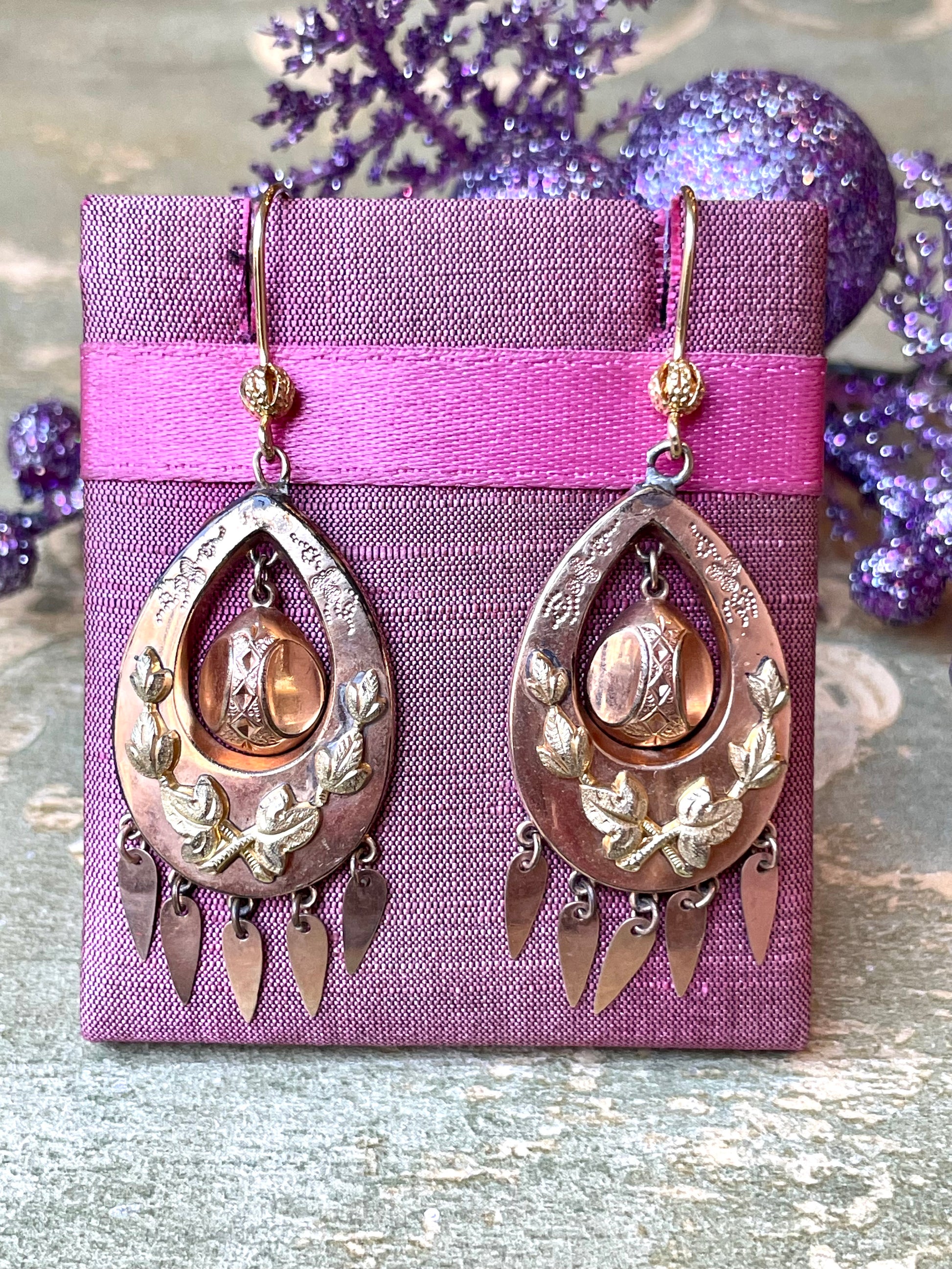 Raffinati orecchini borbonici in due colori d’oro, Italia , 1860/70