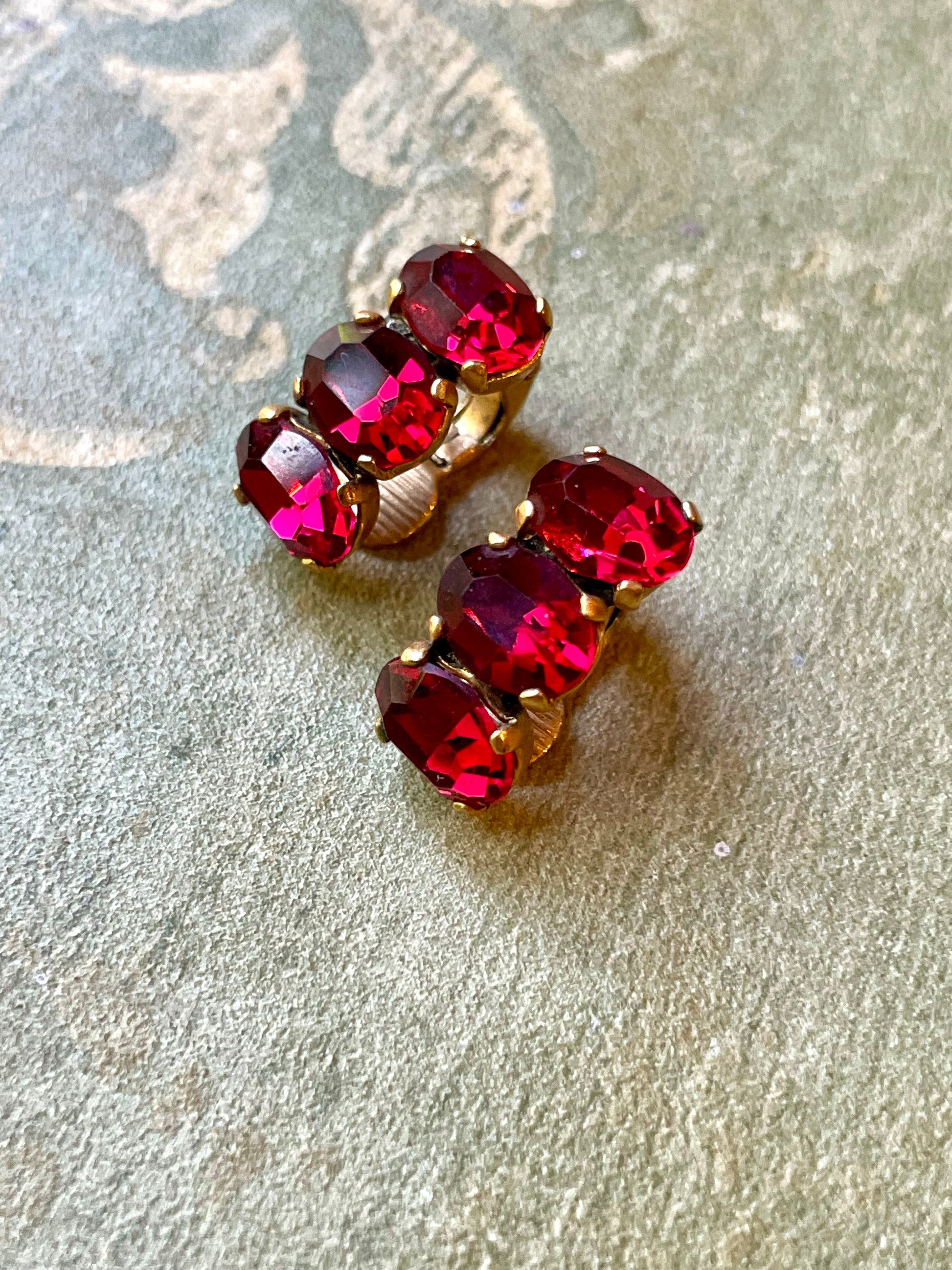 Raffinati orecchini in paste rosse di Perpignan, 1920/30