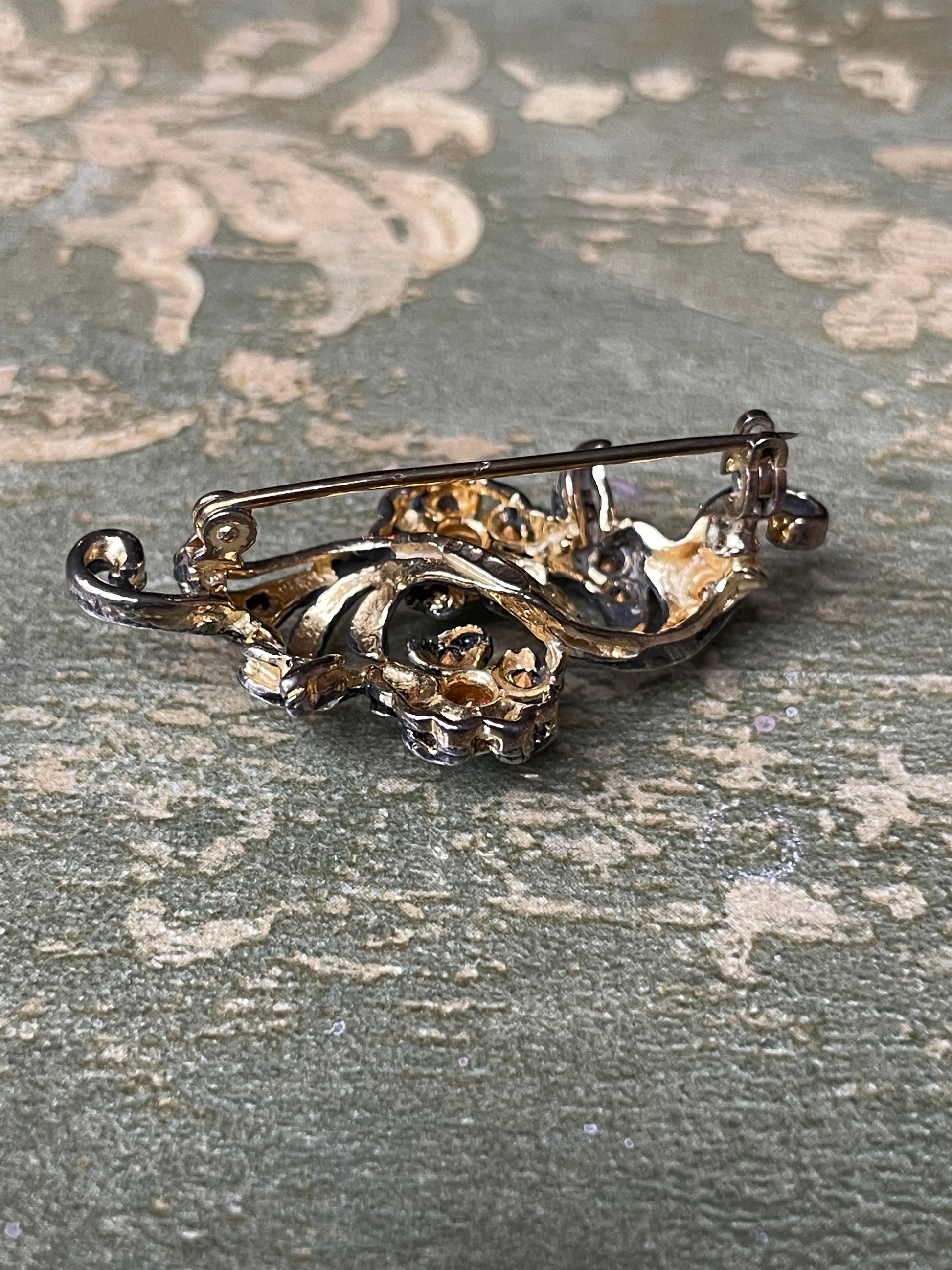 Romantica spilla in argento con tralcio di fiori, anni ‘50