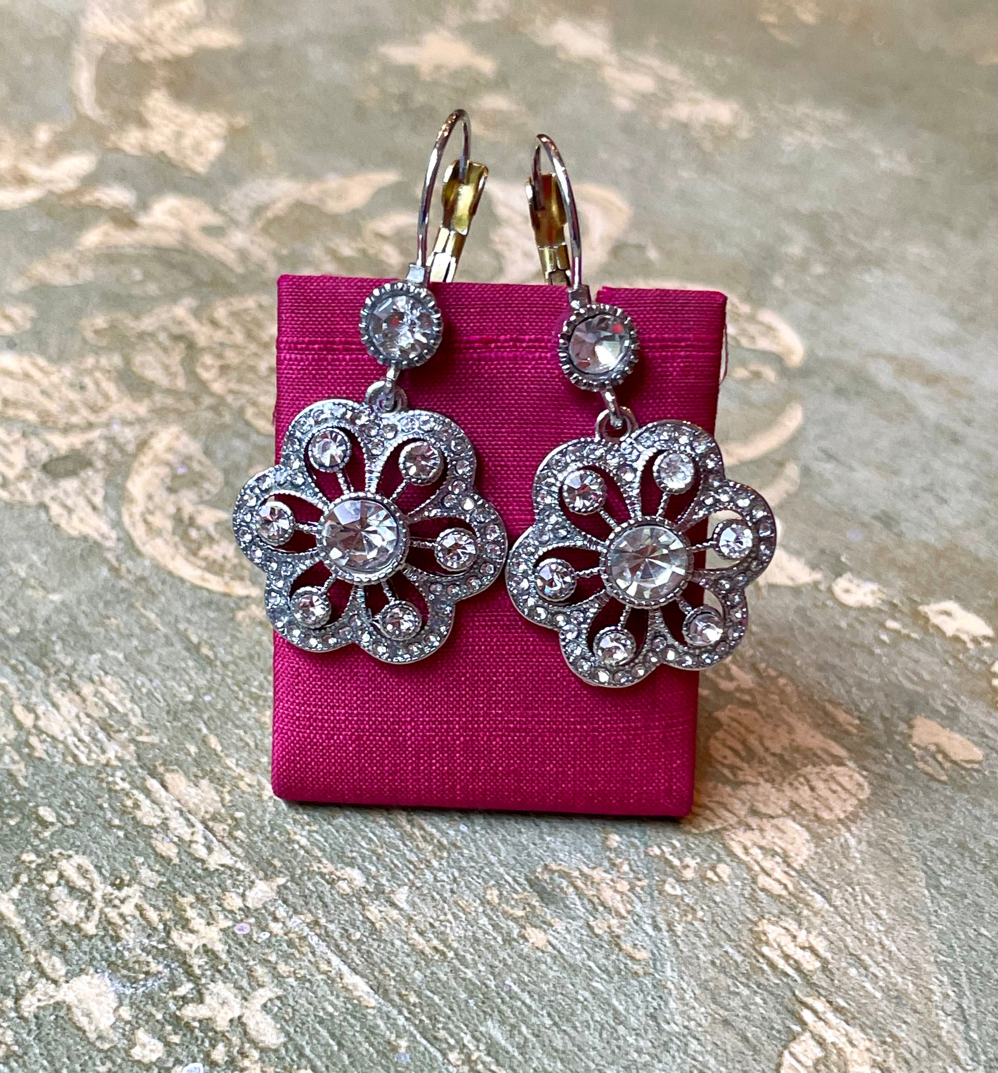 Romantici orecchini con fiore in strass, anni ‘50