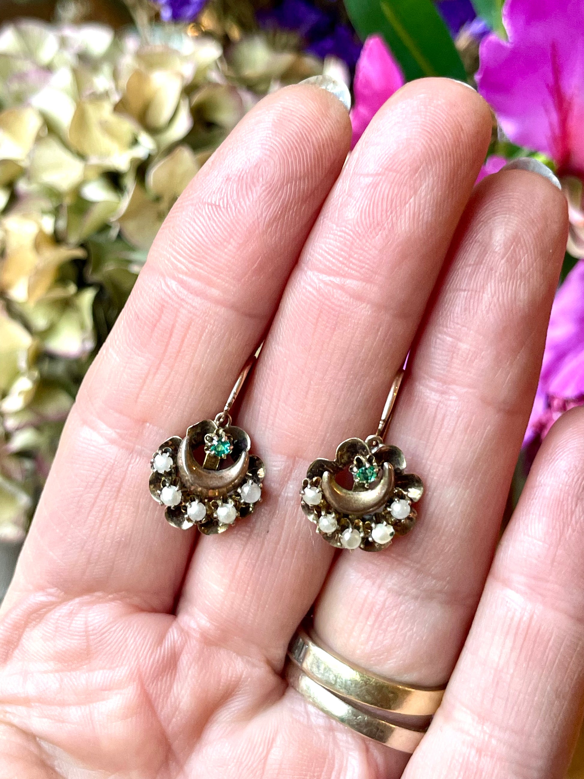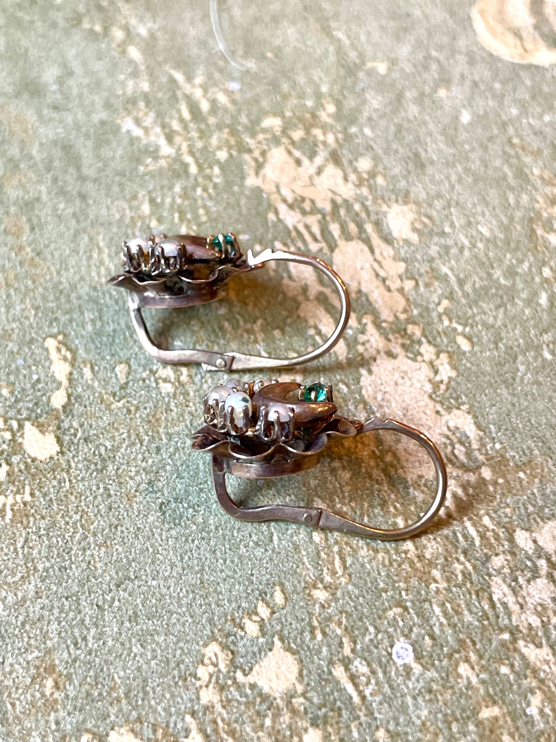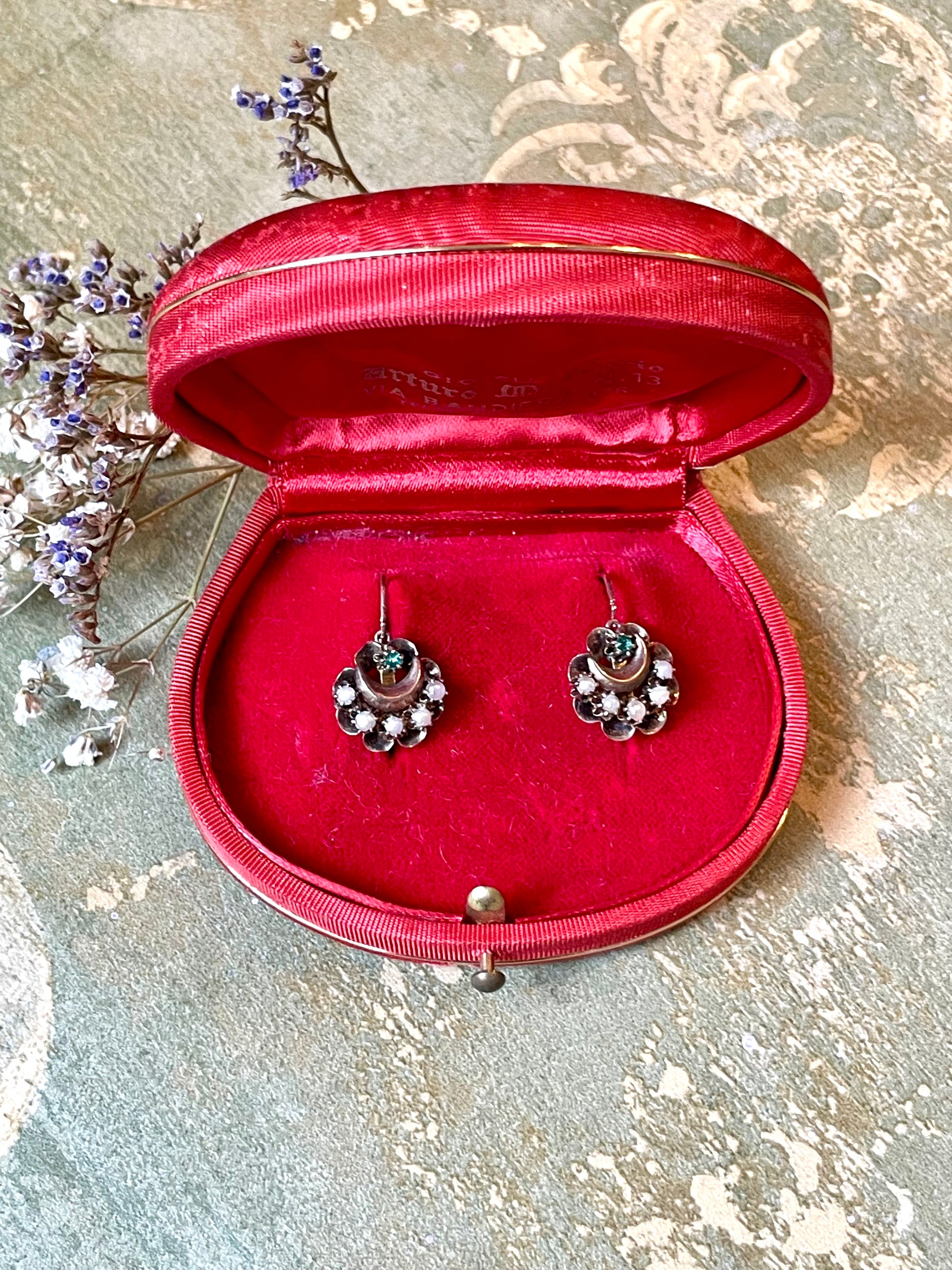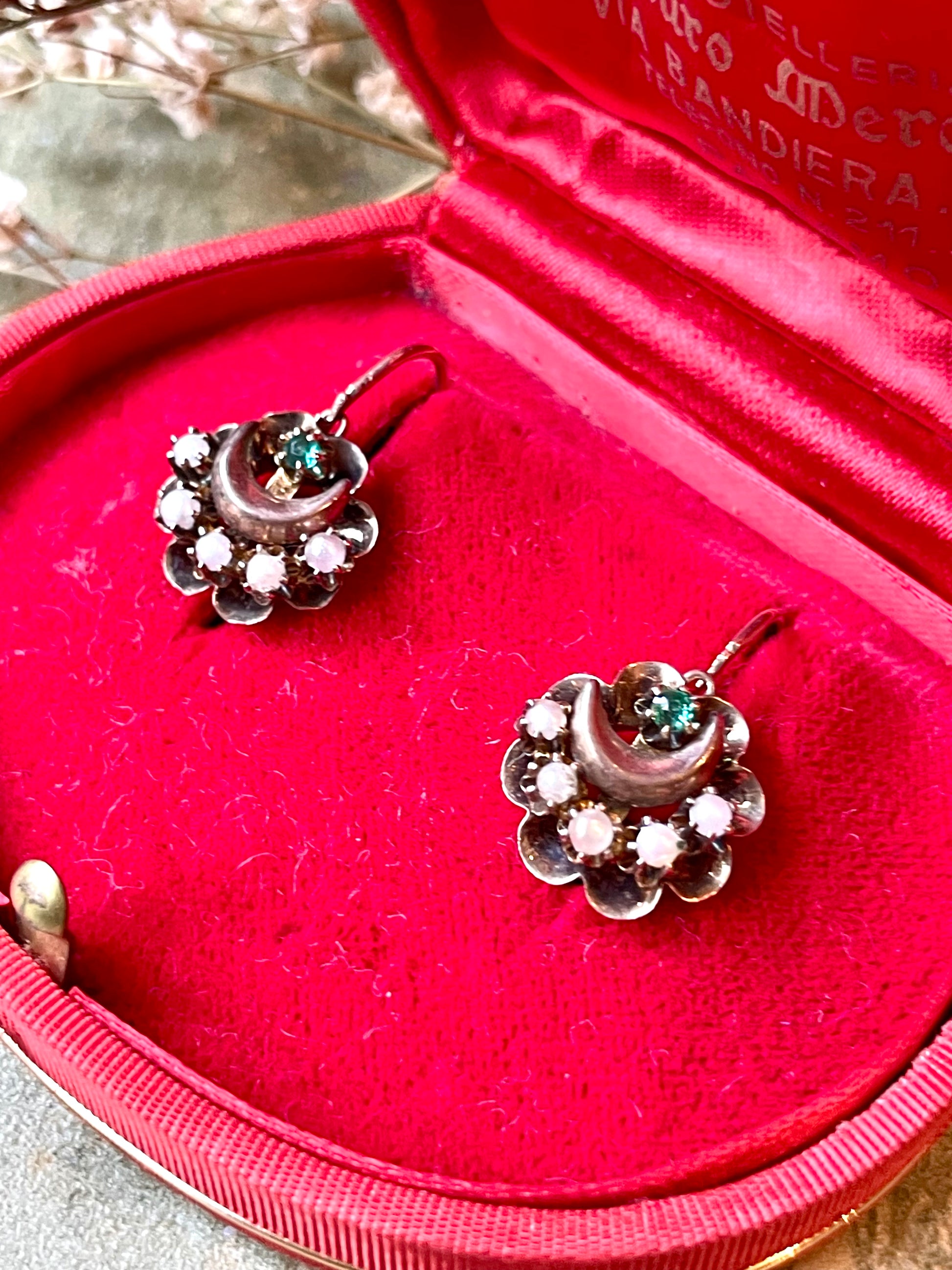 Romantici orecchini dormeuse in oro rosa e perle, Italia del sud, epoca borbonica