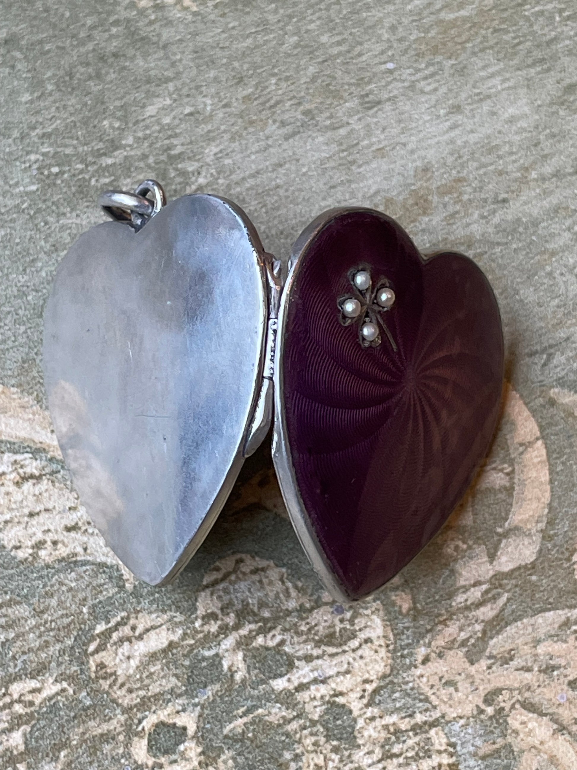 Romantico locket smaltato a forma di cuore, Francia, inizio Novecento