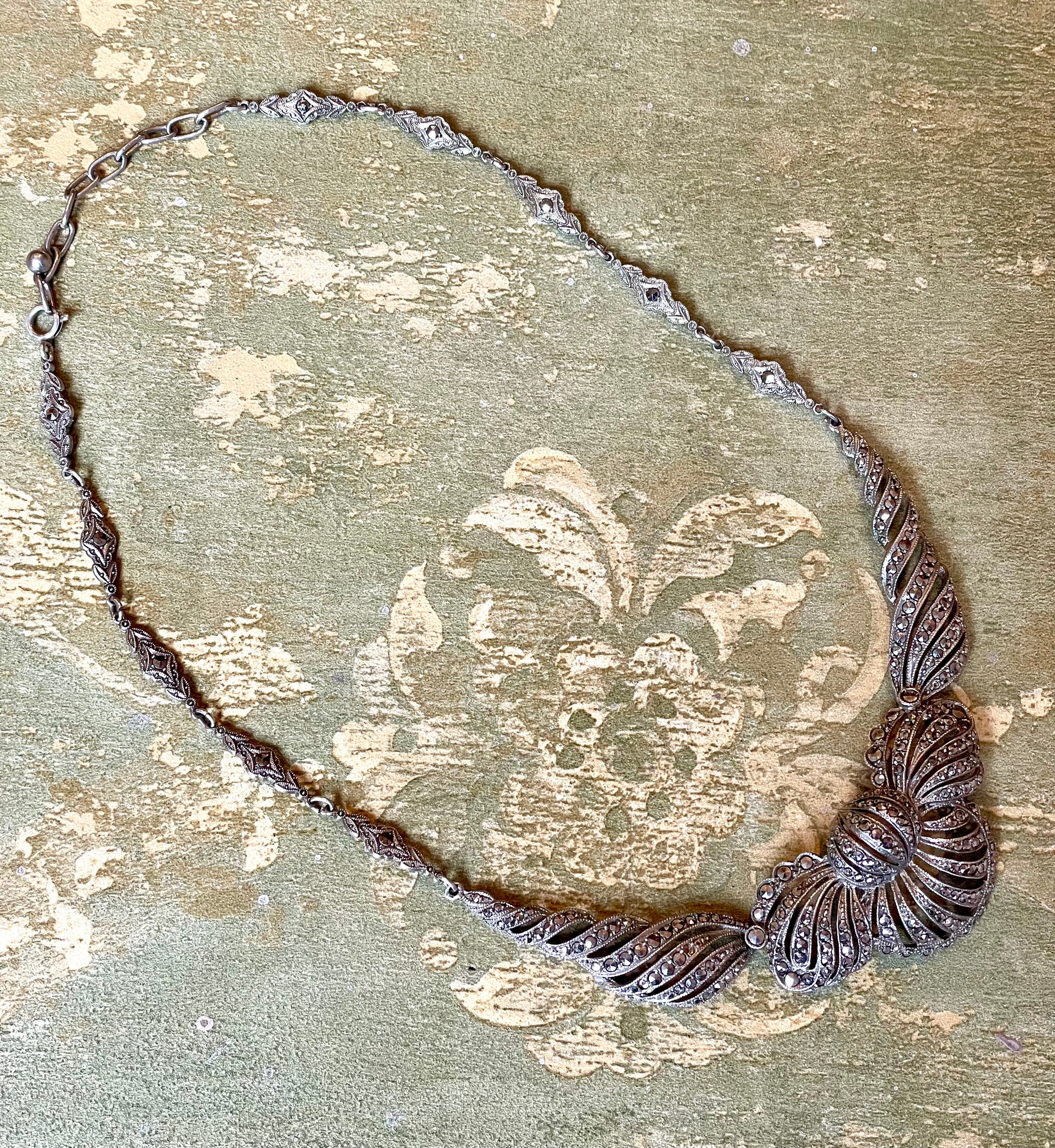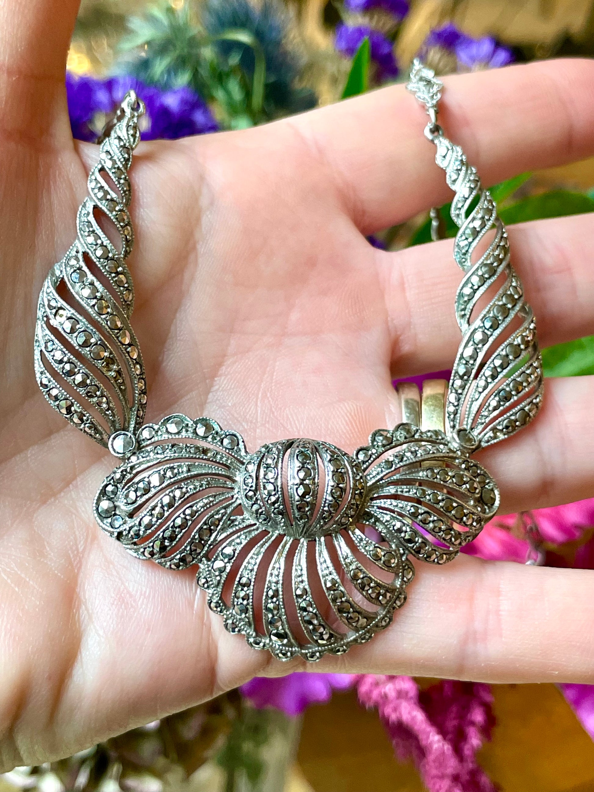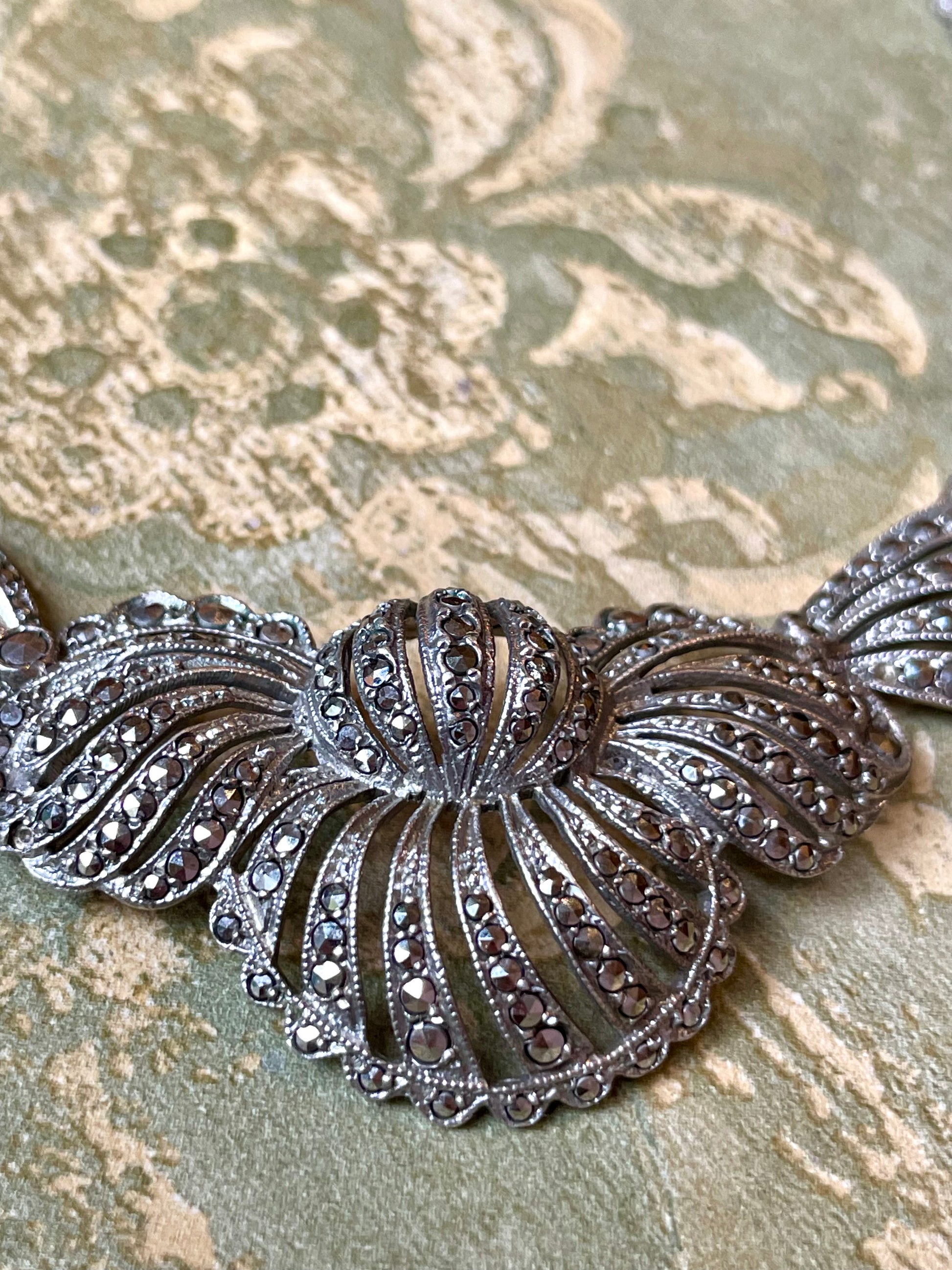Stupenda collana in argento e marcassite, anno ‘40/50