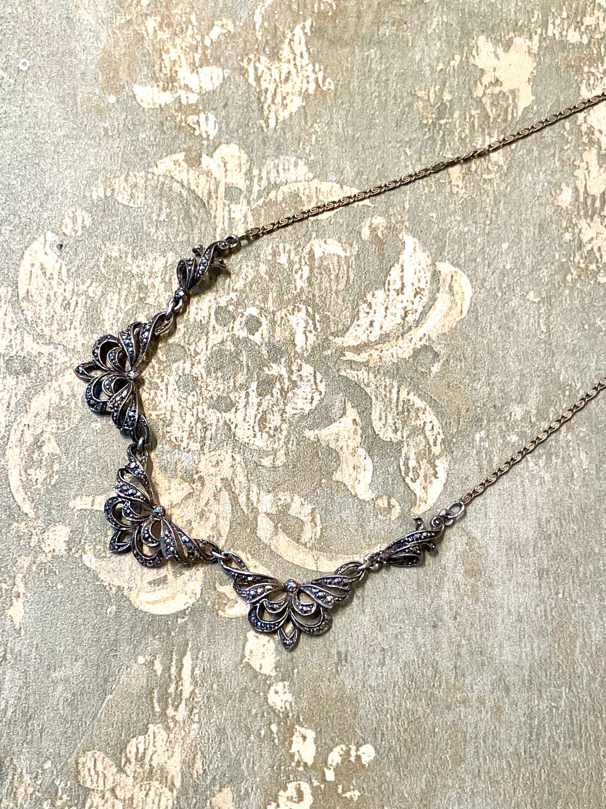 Stupenda collana in argento e marcassite, anni ‘30/40