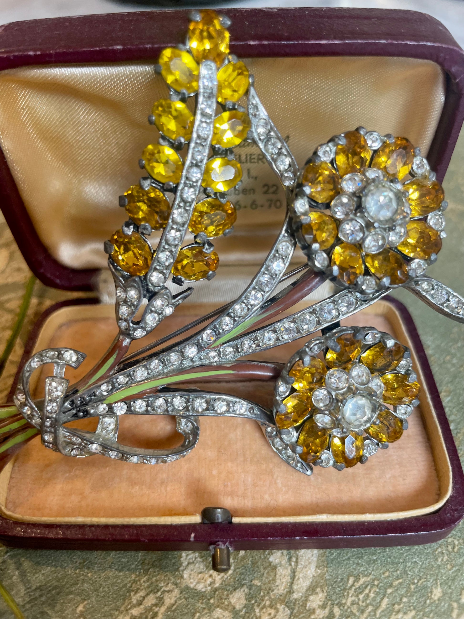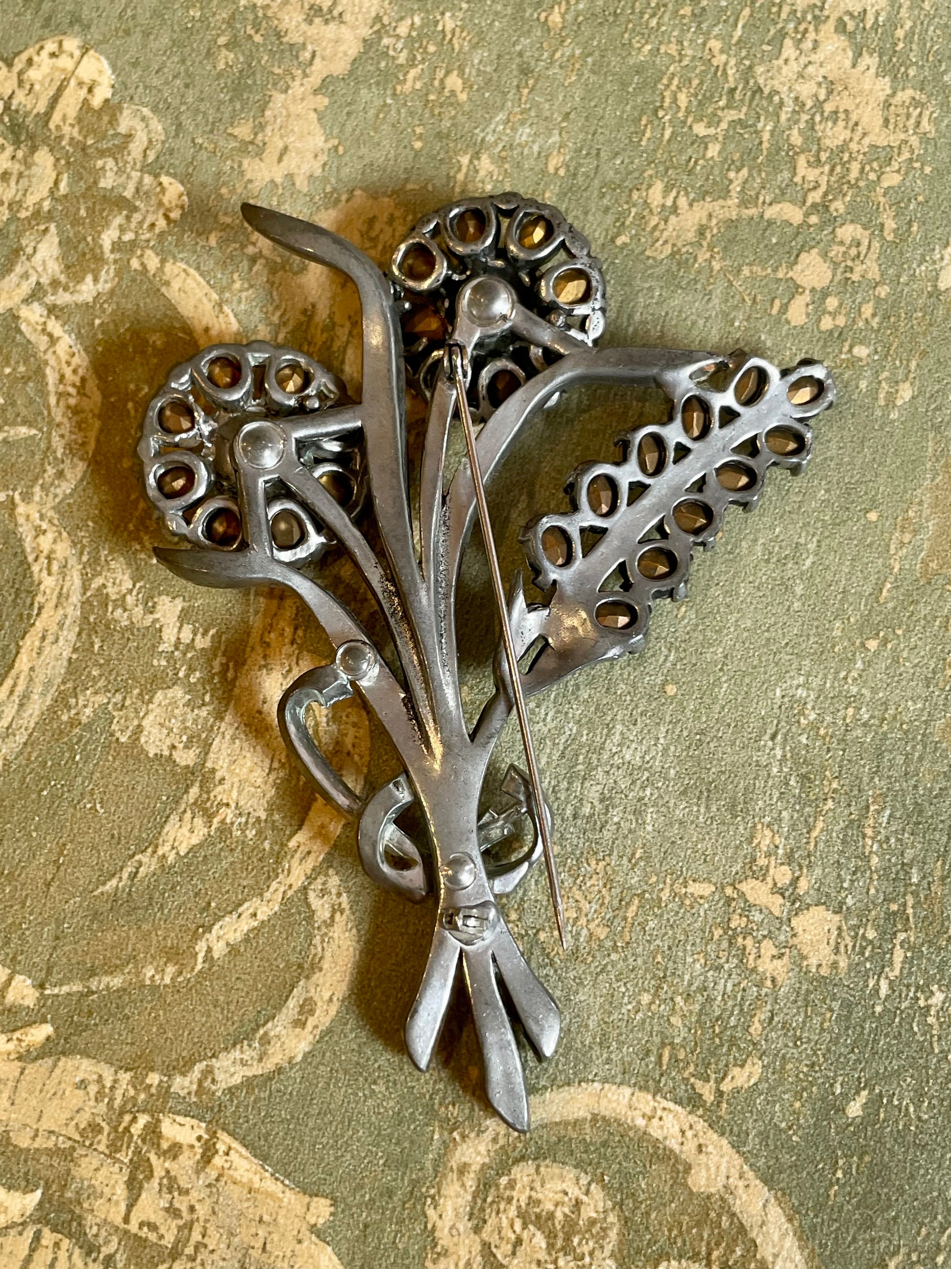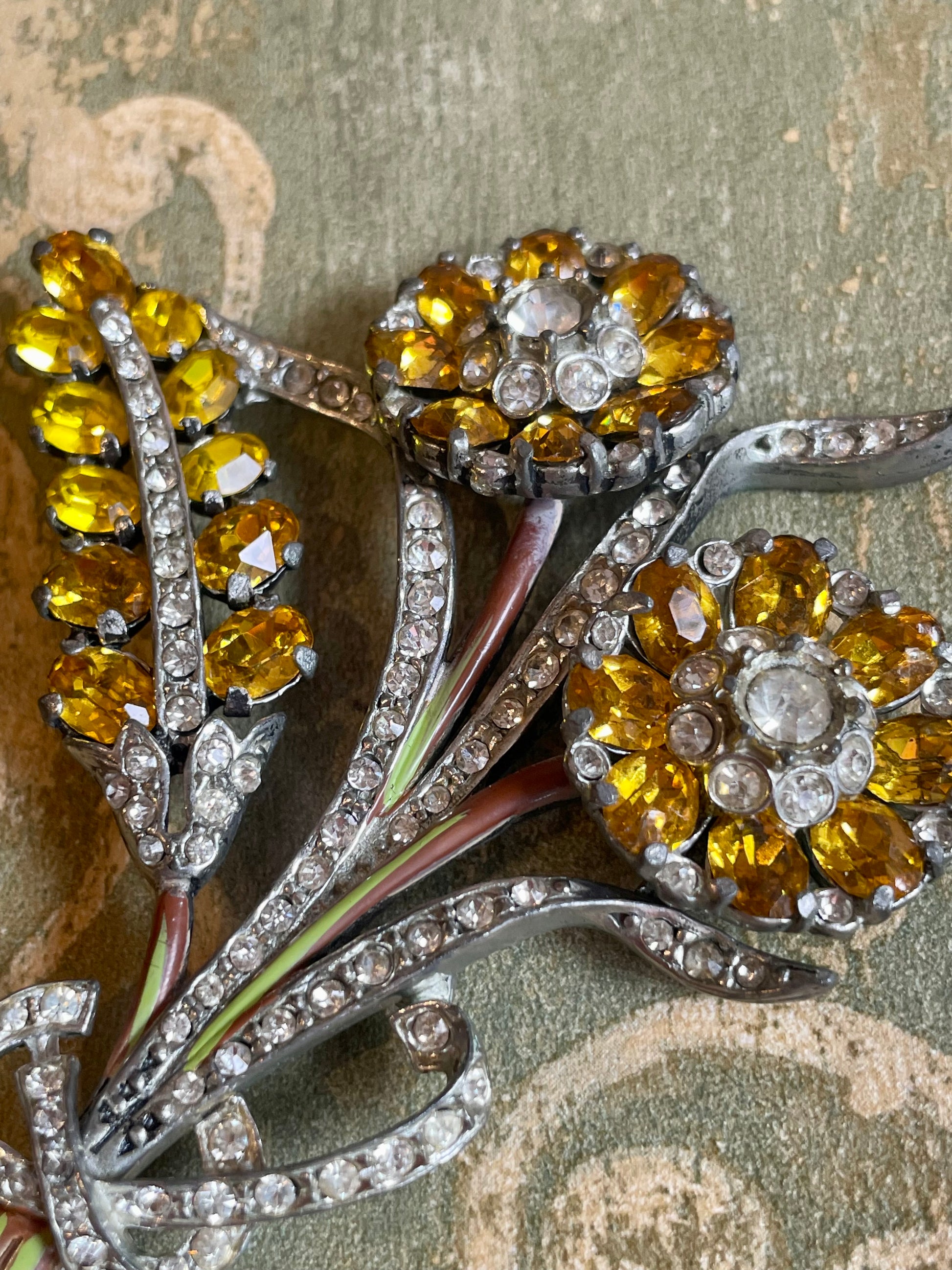 Superba spilla floreale con cristalli, anni ‘50